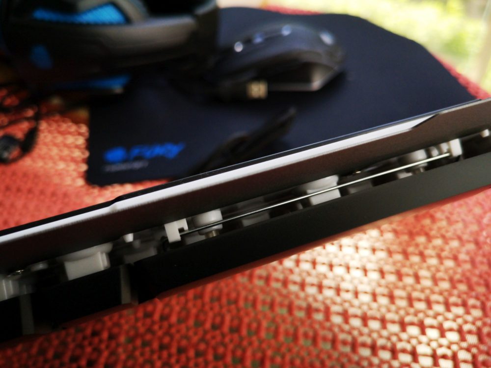 Najsłabszym elementem klawiatury są nóżki znajdujące się na spodzie. Przy bardzo intensywnym nacisku można poczuć ich kruchość i słabą stabilność. Gumowe nóżki znajdujące się na spodzie klawiatury również nie wypadają najlepiej. Klawiatura nie trzyma się dobrze w miejscu. Bez mniejszego wysiłku przesuwa się po biurku, co przy bardzo intensywnej grze może nieco przeszkadzać.