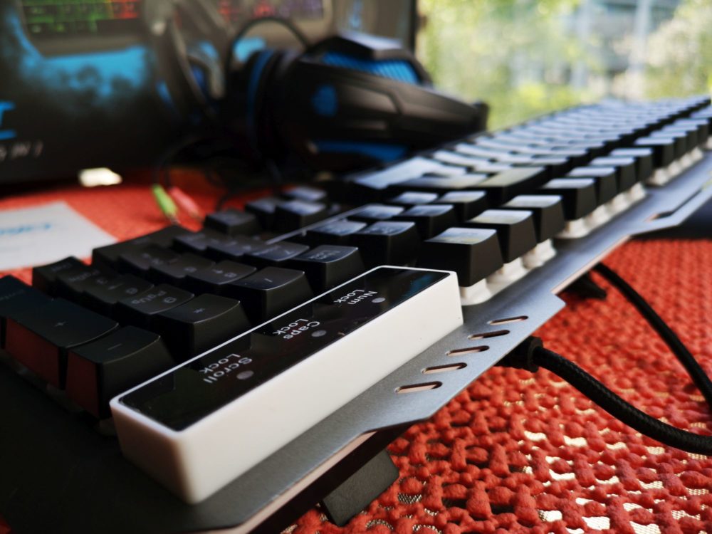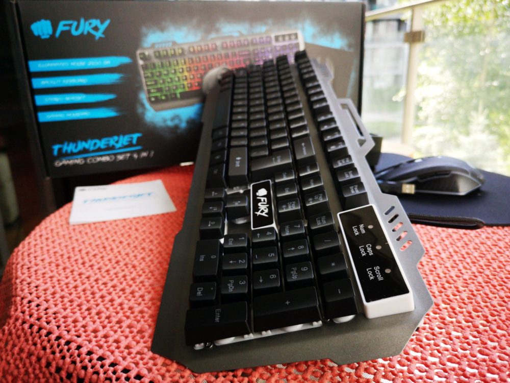 Klawiatura o wymiarach 460×170×30mm oraz wadze 880g (bez kabla) została osadzona na metalowej płytce z ostro zakończonymi krawędziami. Na płytce znajdziemy również klocek z logiem oraz nad klawiszami numerycznymi klocek z diodami informującymi nas o włączonych klawiszach Num Lock, Caps Lock oraz Scroll Lock.