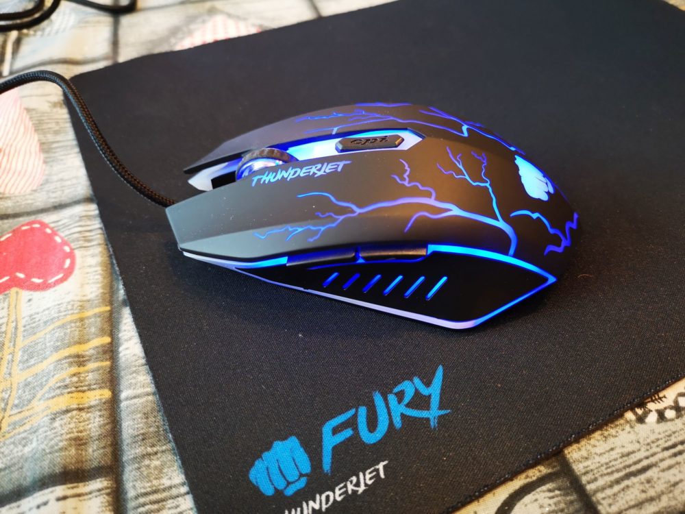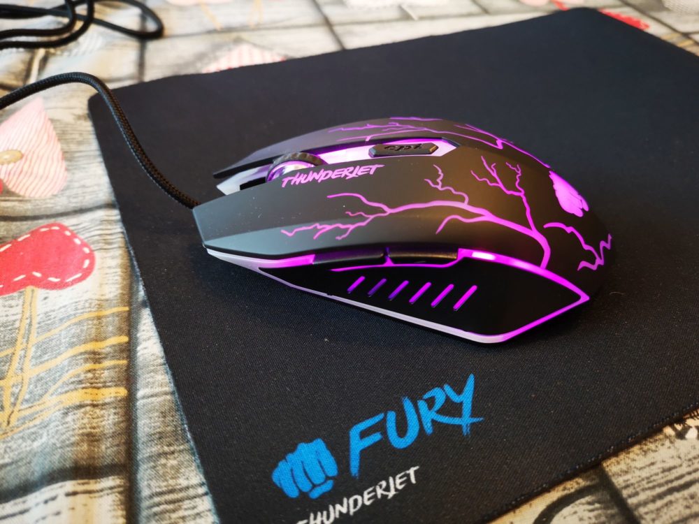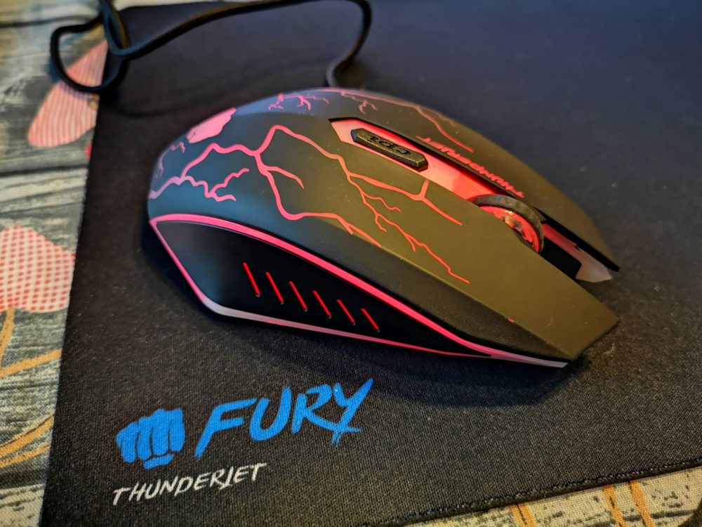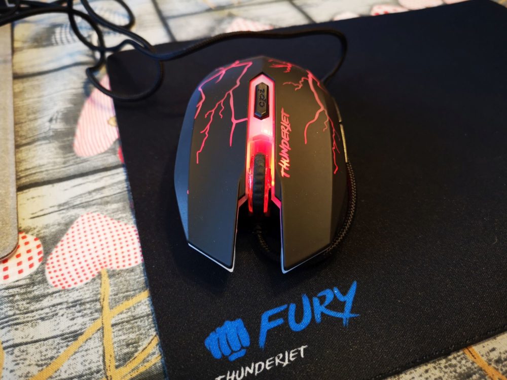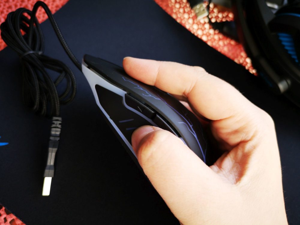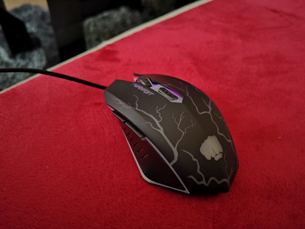 Najbardziej efektownym elementem myszki jest jej podświetlenie. Muszę przyznać, że wykonane wzory, które emitują błyskawicę czy pękające rysy robią wrażenie i na pewno przyciągną niejednego użytkownika. Kolor podświetlenia zmienia się razem ze zmianą DPI.