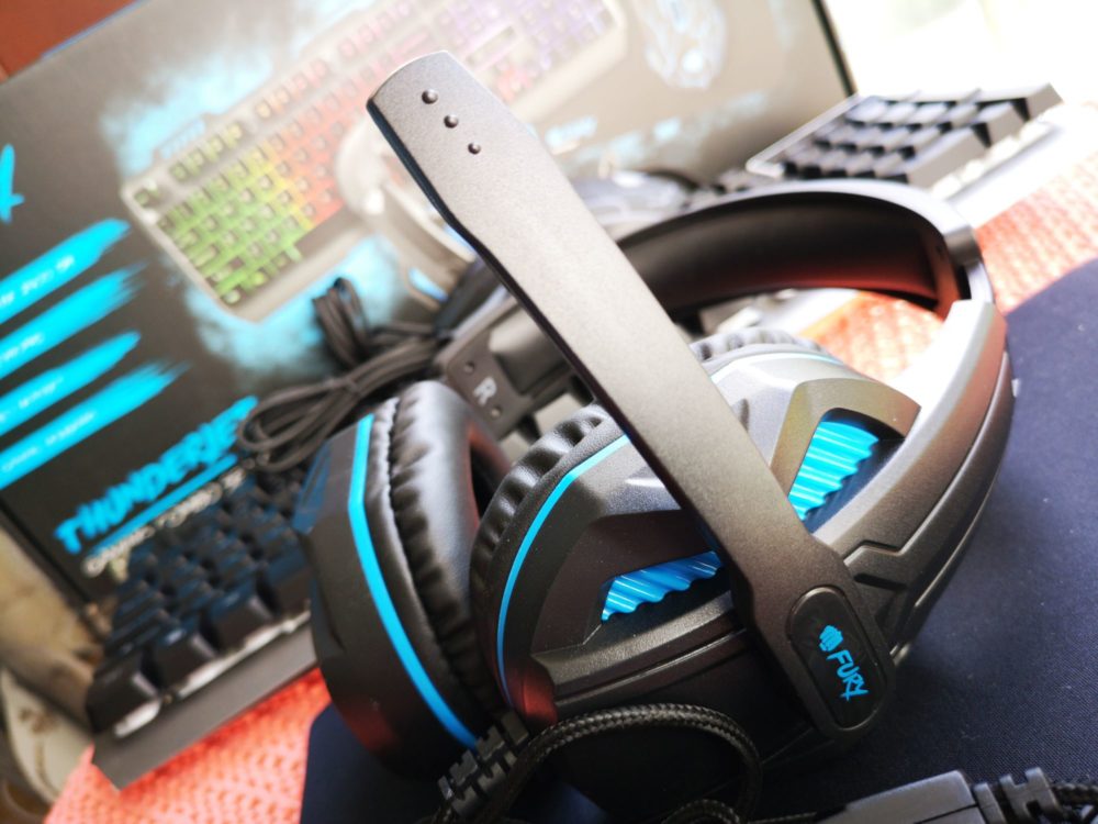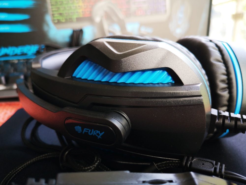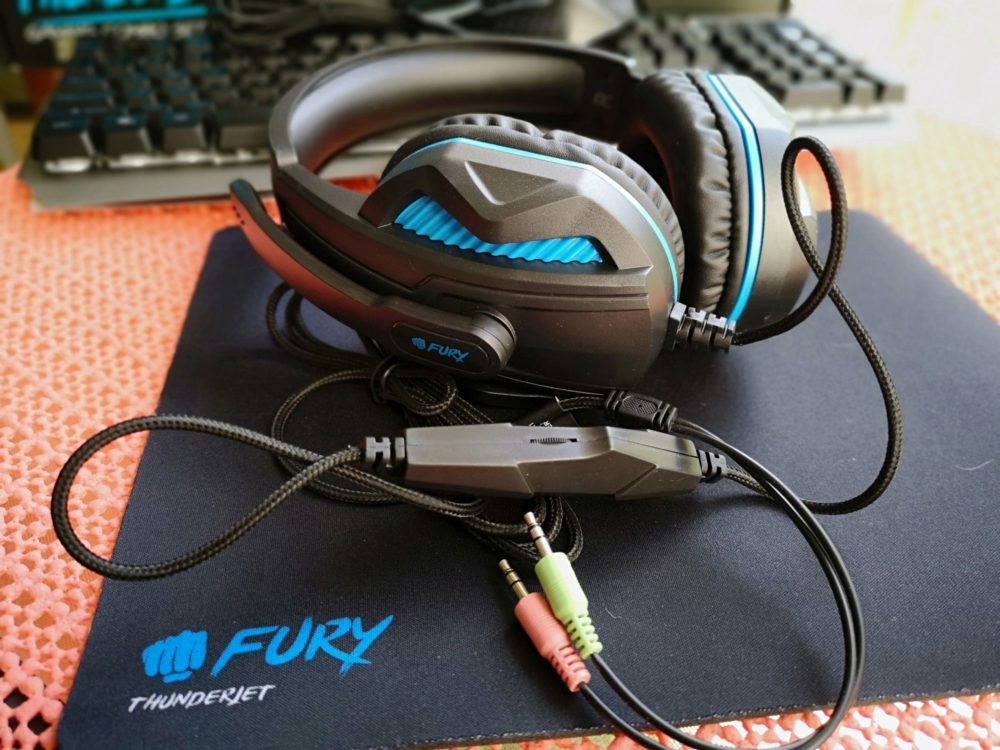 Na lewym nauszniku znajdziemy przyczepiony całkiem przyzwoicie wyglądający mikrofon. Na spodzie nausznika natomiast znajdziemy wyjście plecionego kabla. Słuchawki podłączamy do komputera za pomocą złącza 2 X 3.5MM MINI-JACK. Na kablu umieszczono również bardzo fajny pilot z jednym pokrętłem służącym do zmiany głośności.
