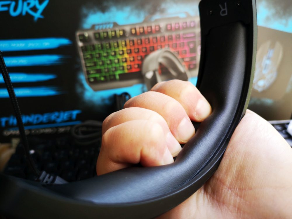 Góra słuchawek wyposażona została miękką gąbkę obszytą bardzo delikatną skórą. Podobnie nauszniki – gąbka również obszyta dosyć delikatną skórką. Środek muszli wyłożono siateczką z minimalną warstwą gąbki. Same muszle są średniej wielkości, co w przypadku większego rozmiaru uszy może nie do końca być wygodne. Moje mieszczą się w całości. Warto tutaj zwrócić na sztywność gąbki w nausznikach – jest nieco sztywna. Przy dłuższym użytkowaniu zaczynamy odczuwać dyskomfort.