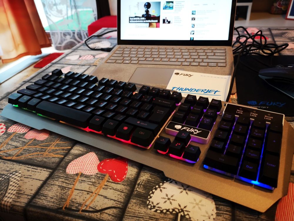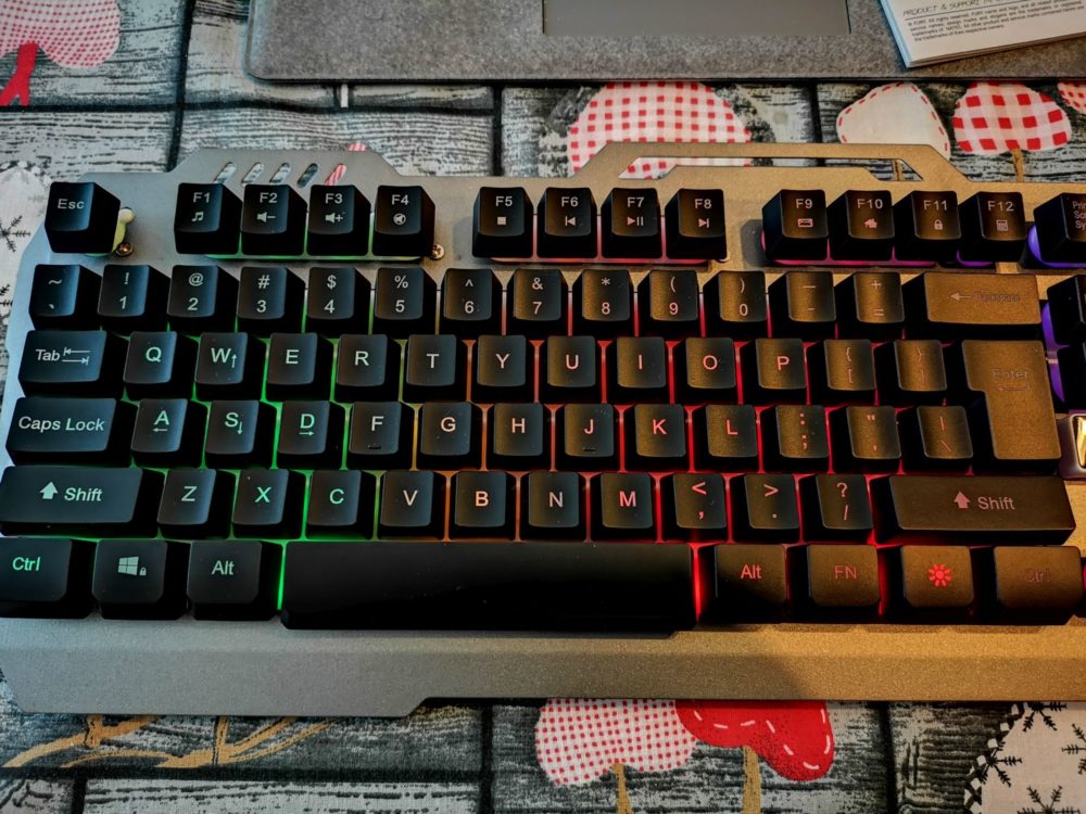 Kolejnym elementem, który przyciąga każdego gracza, jest podświetlenie, które również znajdziemy w tym modelu. Producent zastosował tutaj oświetlenie 6 strefowe (kolor: zielony, pomarańczowy, czerwony, różowy, fioletowy i niebieski). Samo podświetlenie posiada kilka trybów, które możemy zmienić kombinacją klawiszy FN + słoneczko. Zmiana polega na włączeniu trybu ciągłego podświetlenia w migotanie itp. Oprócz trybu podświetlenia można zmienić również jego intensywność lub całkowicie wyłączyć.