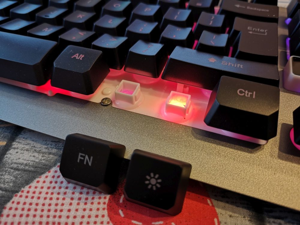 Jeśli chodzi o samo podświetlenie, to o ile klawisze posiadają bardzo dobrze wykonane czcionki, to już same diody podświetlające nie są idealnie rozmieszczone. Niestety sprawia to, że oświetlenie klawiatury nie jest zbyt równomierne.