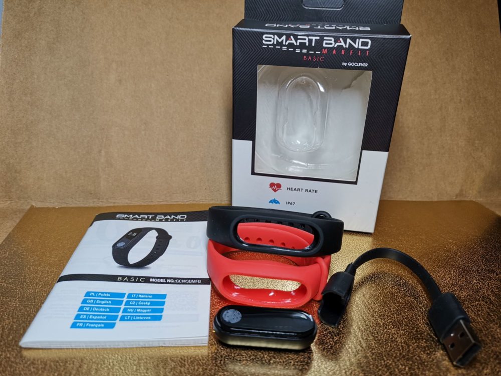 Opaska została zapakowane w kartonowe pudełko z przeźroczystym okienkiem, przez który możemy podejrzeć jego wygląd. W środku opakowania znajdziemy: