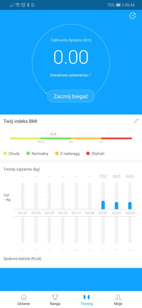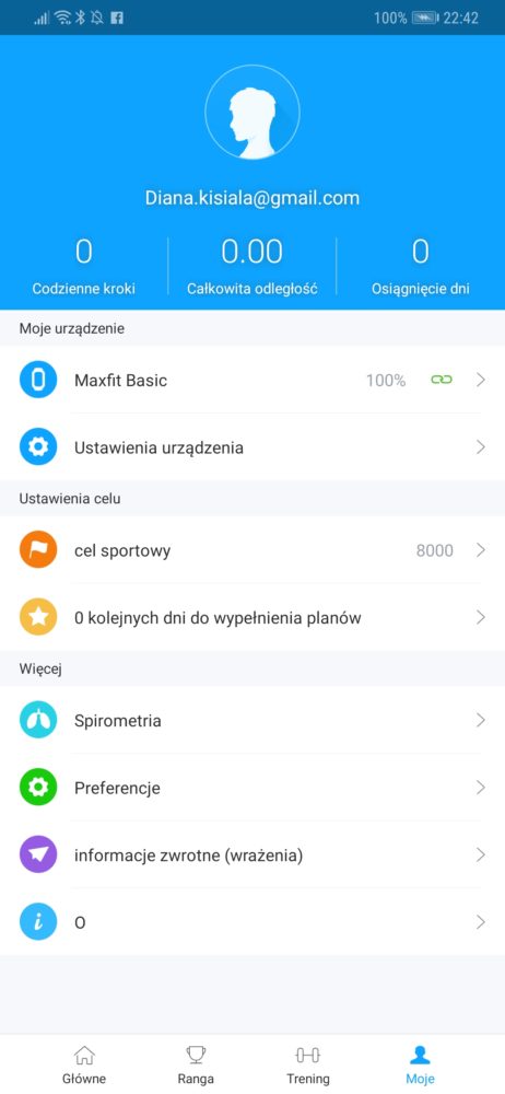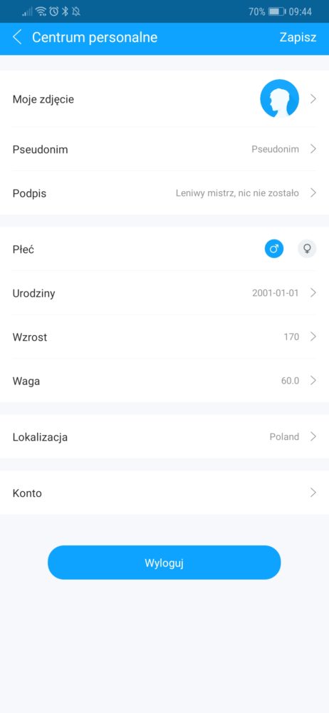 - Ustawienie naszego profilu: zdjęcie, data urodzenia, waga, wzrost