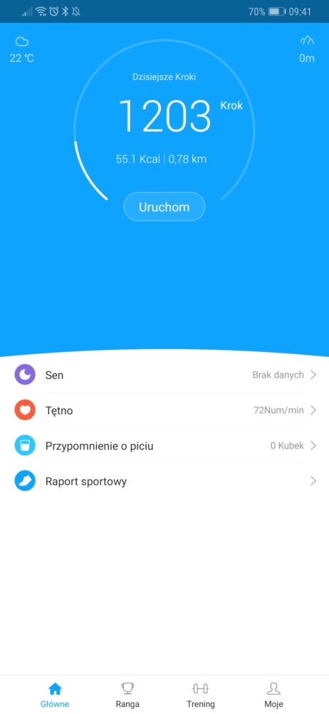 - Funkcje sportowe – Ilość kroków, przebyty dystans, podgląd trasy