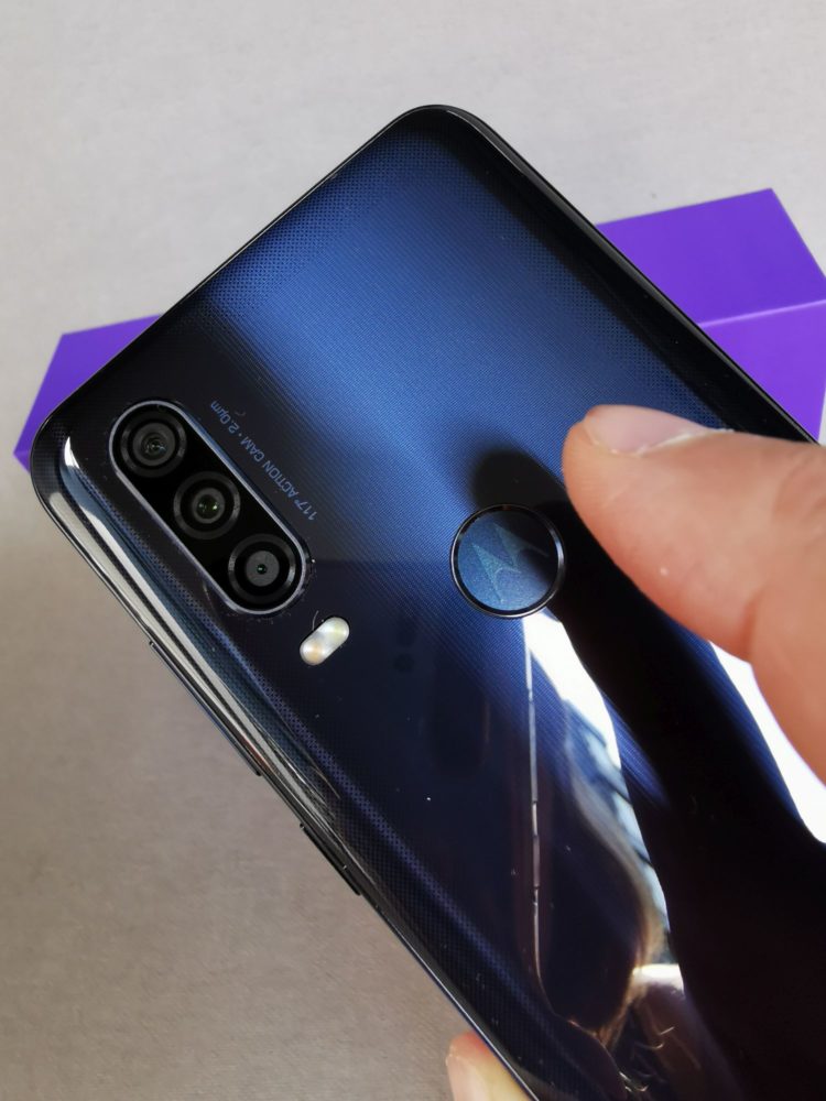 Na tyle obudowy oprócz potrójnego zestawu aparatów, o których nieco później, znajdziemy również czytnik linii papilarnych oraz diodę LED. Czytnik linii papilarnych wylądował idealnie w zasięgu palca wskazującego pod logiem „M”, w okrągłym zagłębieniu – do jego działania nie mam żadnych uwag. Za pomocą telefonu możemy dokonywać płatności w Internecie i offline. Odbywa się to szybko i łatwo dzięki usłudze Google Pay, która łączy wszystkie informacje potrzebne do płatności i bezpiecznie je przechowuje.