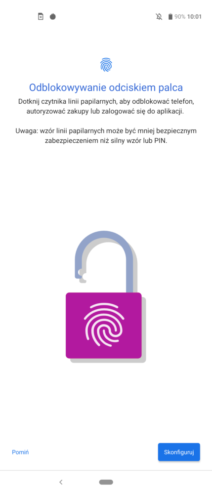 Oprócz odblokowania telefonu czytnikiem linii papilarnych. Mamy również do dyspozycji opcje odblokowania twarzą, która działa wystarczająco dobrze i w miarę szybko (poza przypadkami przy słabym oświetleniu), ale za to jest mniej bezpieczna, o czym nawet przestrzega sam producent.