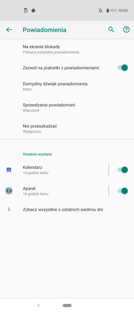 W Motorola One Action, podobnie jak Motorola One Vision, zabrakło niestety bardzo ważnego dla niektórych użytkowników elementu – diody powiadomień. Brak diody powiadomień rekompensować ma charakterystyczny dla smartfonów Motoroli „Moto Display”. Wyświetlacz Moto prezentuje podgląd powiadomień i aktualności, dzięki czemu mamy informacje, bez odblokowywania telefonu. Motorola One Vision obsługuje tylko wybrane funkcje Moto Action i Moto Display. Gesty Moto pozwalają łatwo wykonywać codzienne czynności przy użyciu prostych gestów. Możemy dwukrotnie obrócić nadgarstek, aby włączyć aparat, lub potrząsnąć dwukrotnie nadgarstkiem, aby włączyć latarkę, skorzystać z nowej wersji nawigacji jednym przyciskiem lub zrób zrzut z ekranu jednym dotknięciem. Pod ekranem znajdziemy dotykowe przyciski, widoczne po wybudzeniu smartfona. Telefon udostępnia także użytkownikom przydatne innowacje Androida, takie jak Asystent Google oraz funkcję do odpowiedzialnego korzystania z urządzenia – Cyfrową równowagę (Digital Wellbeing), która pomaga skoncentrować się na tym, co najważniejsze, umożliwiając blokowanie tego, co rozprasza uwagę.