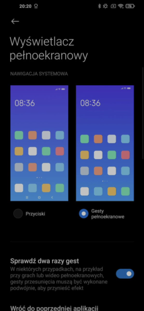 O samej nawigacji nie będę się już rozwodzić. Nie jest już niczym dziwnym możliwość wyłączenia dolnej belki i włączenie obsługi gestami. Również tutaj posiadamy tą możliwość.