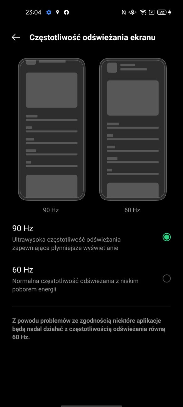 Dodam jeszcze, że smartfon posiada również funkcję redukcji światła niebieskiego (tryb ochrony oczu), a w opcjach dodatkowo możemy zmienić temperaturę barw (zimne, domyślne, ciepłe) oraz włączyć tryb ciemny. I tutaj nowość. Tryb ciemny możemy włączyć w 3 wariantach: wzmocniony (tło jest czarne), średni (tło jest ciemno szare) oraz delikatny (tło jest jasno szare). Dzięki temu możemy wejść na kolejny poziom personalizacji naszego ekranu.