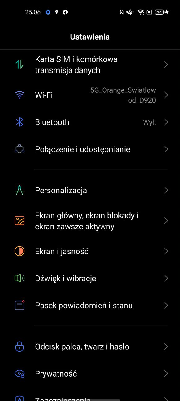 W Oppo Reno 5, poza standardowymi funkcjami odblokowania jakimi są pin, wzór czy hasło, znajdziemy oczywiście czytnik linii papilarnych, który umieszczono w ekranie oraz możliwość odblokowania telefonu przez skanowanie twarzy (Niestety mniej bezpieczne). Odblokowanie twarzą działa jak najbardziej wystarczająco szybko i poprawnie. Poza momentami, gdy znajdziemy się w miejscu o słabym oświetleniu. W przypadku użycia czytnika linii papilarnych, to odblokowanie ekranu następuje również dosyć szybko, a sam czytnik umieszczony jest na dobrej wysokości i co więcej pojawia się również na wyłączonym ekranie w momencie wykrycia ruchu, co ułatwia bardziej precyzyjne wycelowanie w niego palcem.
