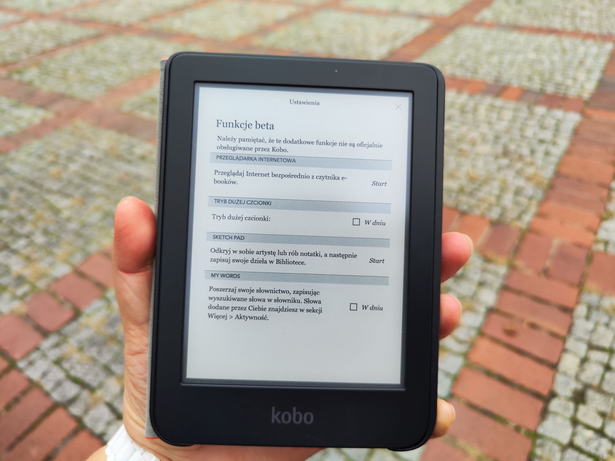 I tutaj płynnie przejdziemy do oprogramowania. A mianowicie mamy zainstalowany system od producenta z jego sklepem (www.kobo.com) i możliwością podłączenia konta Pocket. Nie znajdziemy tutaj żadnych dodatkowych aplikacji czy możliwości doinstalowania dodatkowych aplikacji. Trochę szkoda bo nie ukrywam, że mając konta na audioteka.com czy legimi.pl chciałabym móc się połączyć z moimi książkami czy audiobookami. Owszem możemy z opcji beta przejść do odpowiedniego WWW, ale jednak to nie to samo aplikacja pod ręką. Zadałam pytanie producentowi czy planuje wprowadzić takie usprawnienia, ale na dzień pisania tej recenzji jeszcze nie otrzymałam odpowiedzi. Jak tylko uda mi się ją uzyskać, to na pewno zaktualizuję ten wpis.