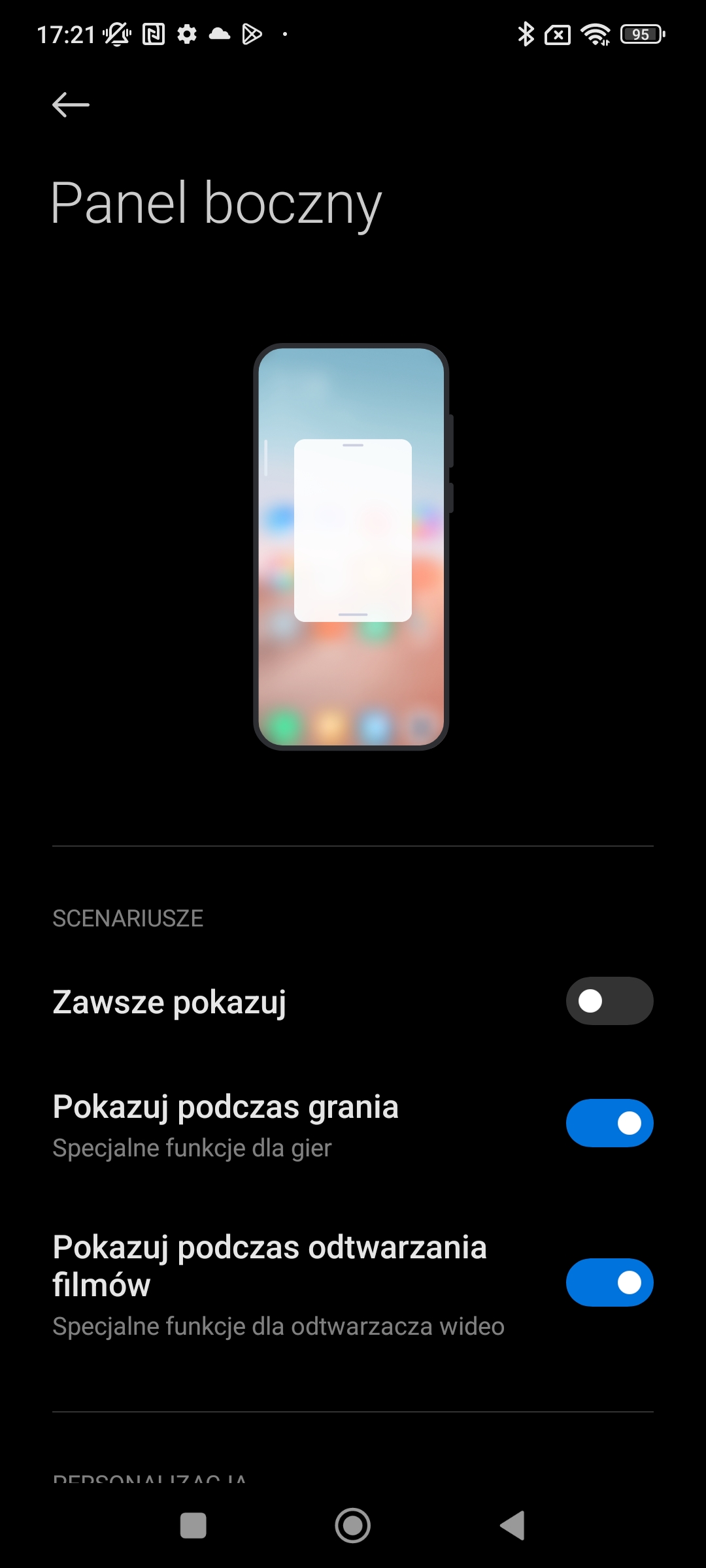 Standardowo też możemy włączyć obsługę gestami lub pozostać przy dolnej belce z przyciskami.