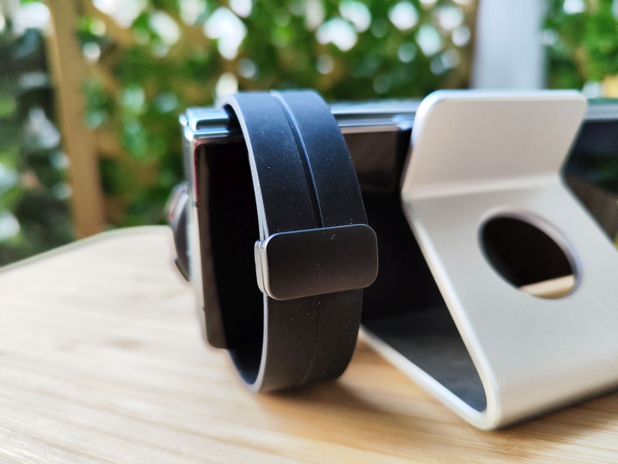 Dodam jeszcze, że na obudowie znajdziemy głośnik, mikrofon (do rozmów) oraz 2 fizyczne przyciski, które dodatkowo ułatwią nam nawigację po zegarku. A wspomniany wcześniej pasek jest wykonany z elastomeru z zapięciem podobnym jaki stosuje się w bransoletach. Tutaj muszę przyznać, że jest nawet całkiem wygodny w zapięciu i zdejmowaniu. Nie miałam też sytuacji, aby gdzieś przypadkowo mi się odpiął.