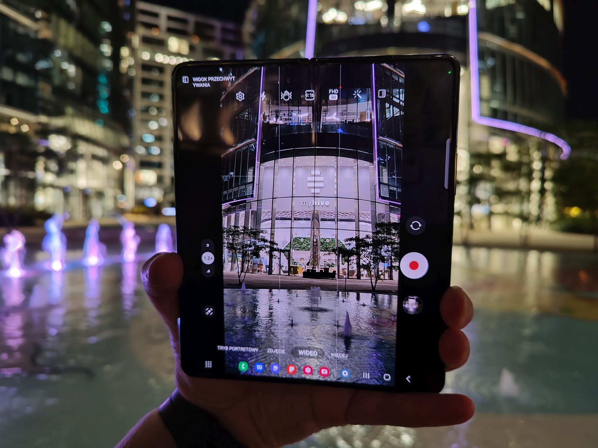 W Galaxy Z Fold 4 (podobnie jak w Galaxy Z Fold 3) ukryto aparat do selfie w wewnętrznym wyświetlaczu. Producent deklaruje, że jest on znacznie mniej widoczny niż w poprzedniku. No może i jest trochę mniej widoczny, ale jednak nadal jest.