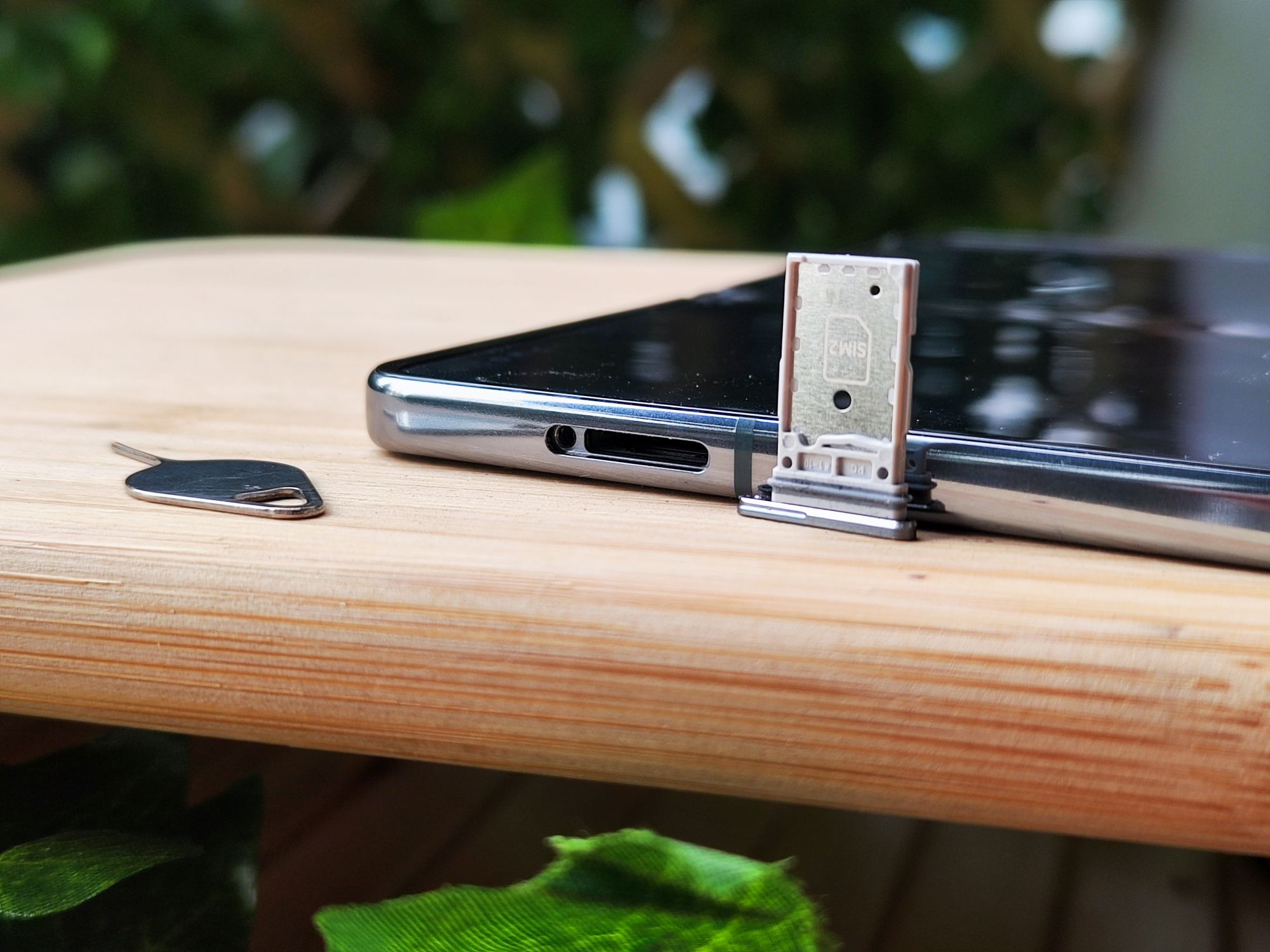• Na lewej krawędzi – gniazdo na dwie karty nano SIM (możliwe jest też podłączenie jednej dodatkowej karty eSIM)