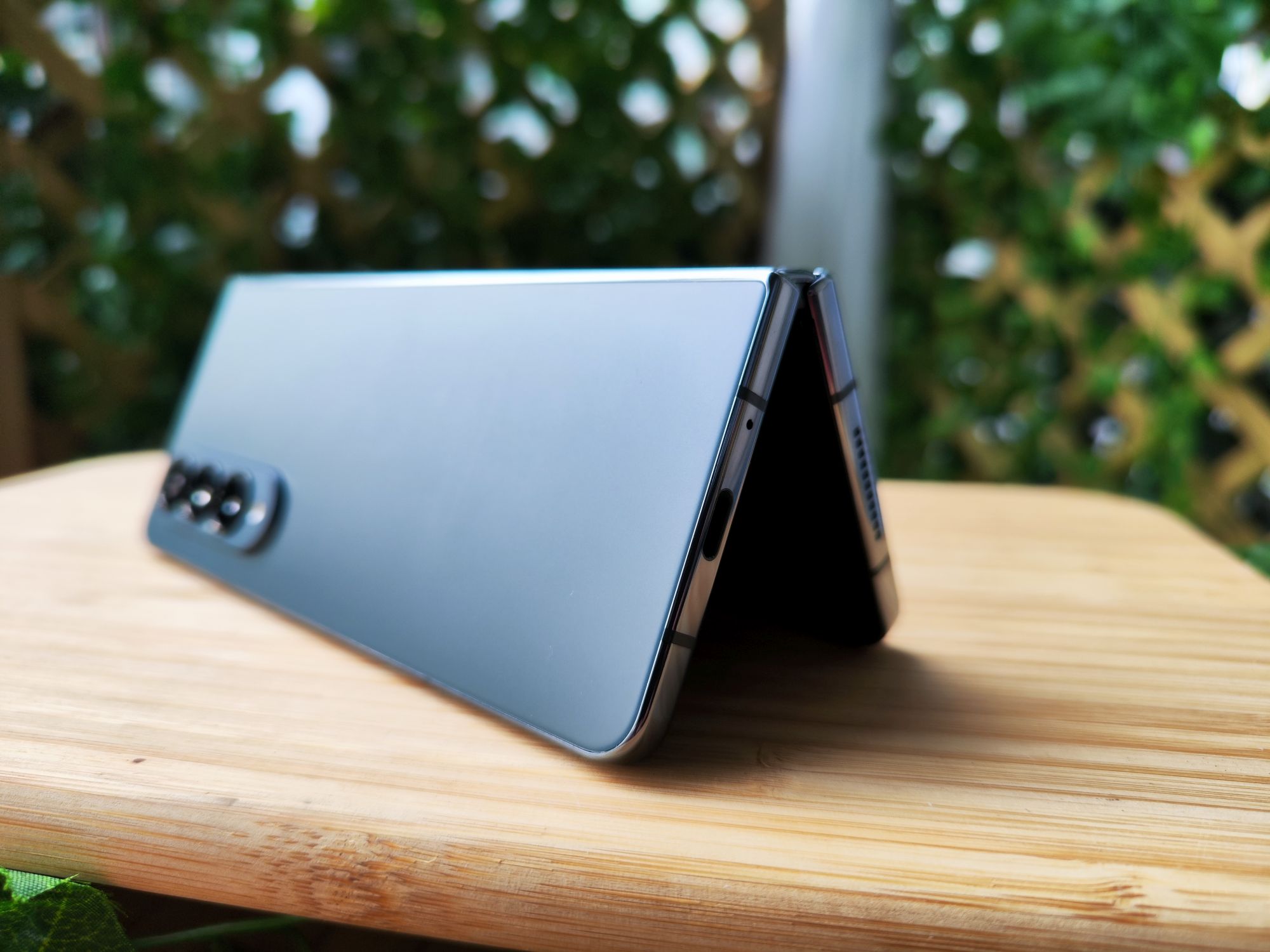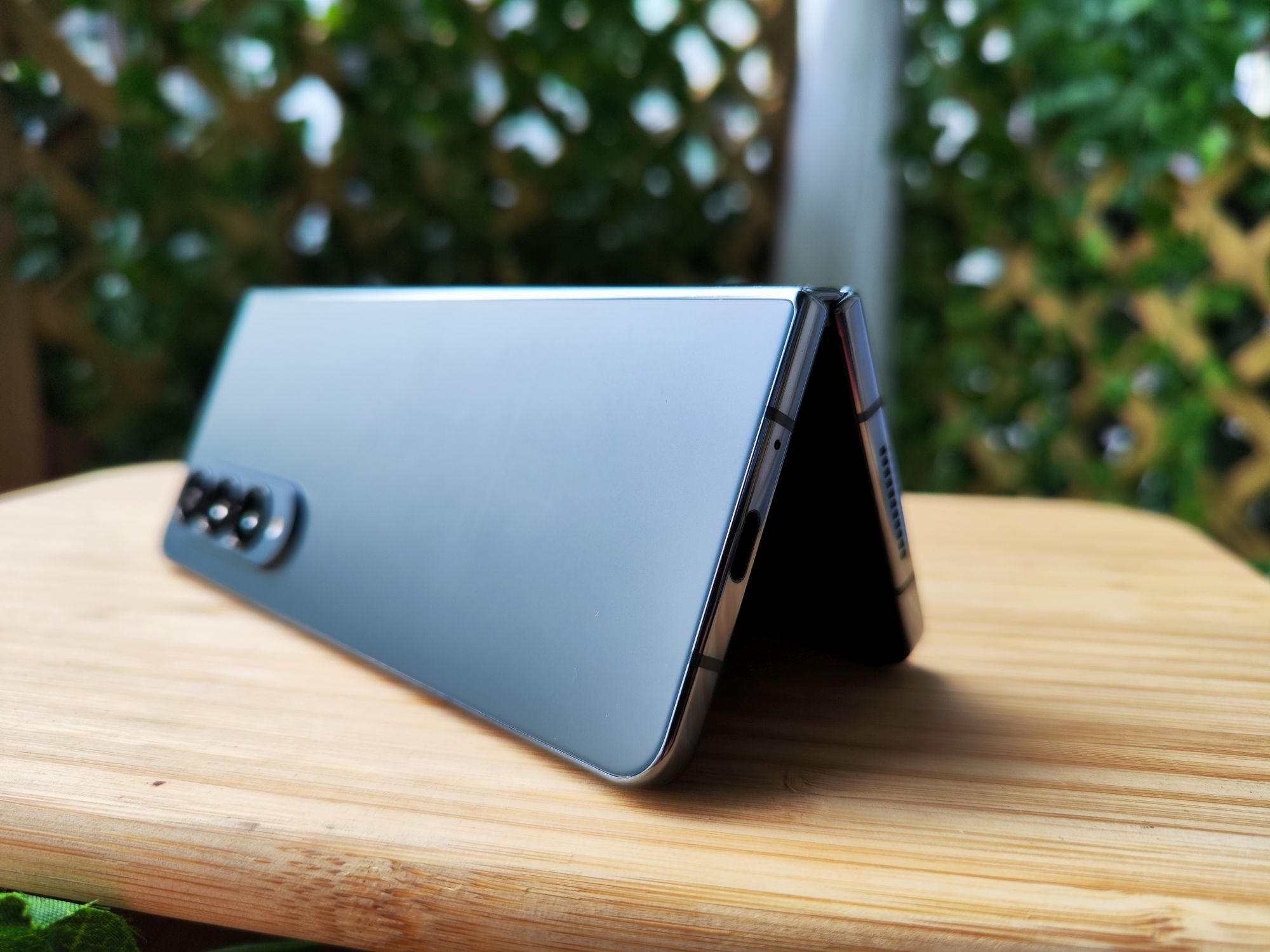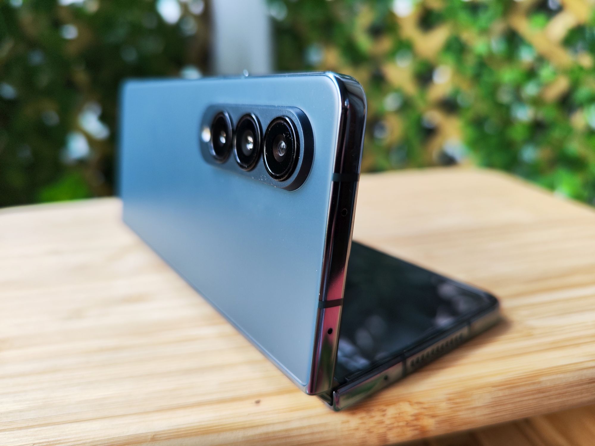 Podobnie jak w poprzednikach Galaxy Z Fold 4 również otrzymał zawiasy, które pozwalają na postawienie go i korzystanie w pełni ze wszystkich funkcji oferowanych w trybie Flex. Możemy ustawić telefony w dowolnym rozłożeniu od złożenia po całkowite rozłożenie. Przydaje się to np. gdy prowadzimy telekonferencje czy robimy zdjęcie, które potrzebuje statywu, a go nie posiadamy.