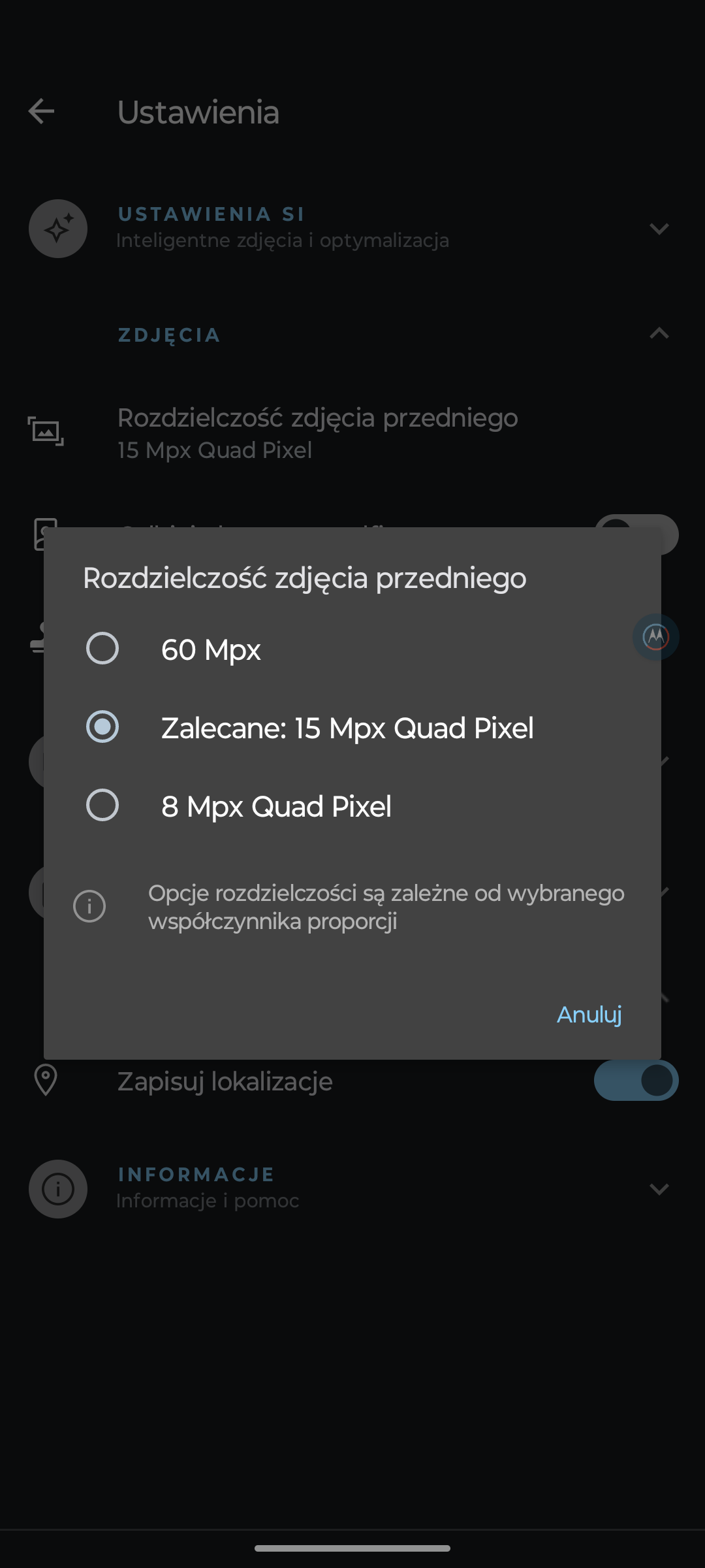 Warto jeszcze wspomnieć, że Motorola nie posiada standardowego Always on Display, a tylko ich dedykowany ekran moto.