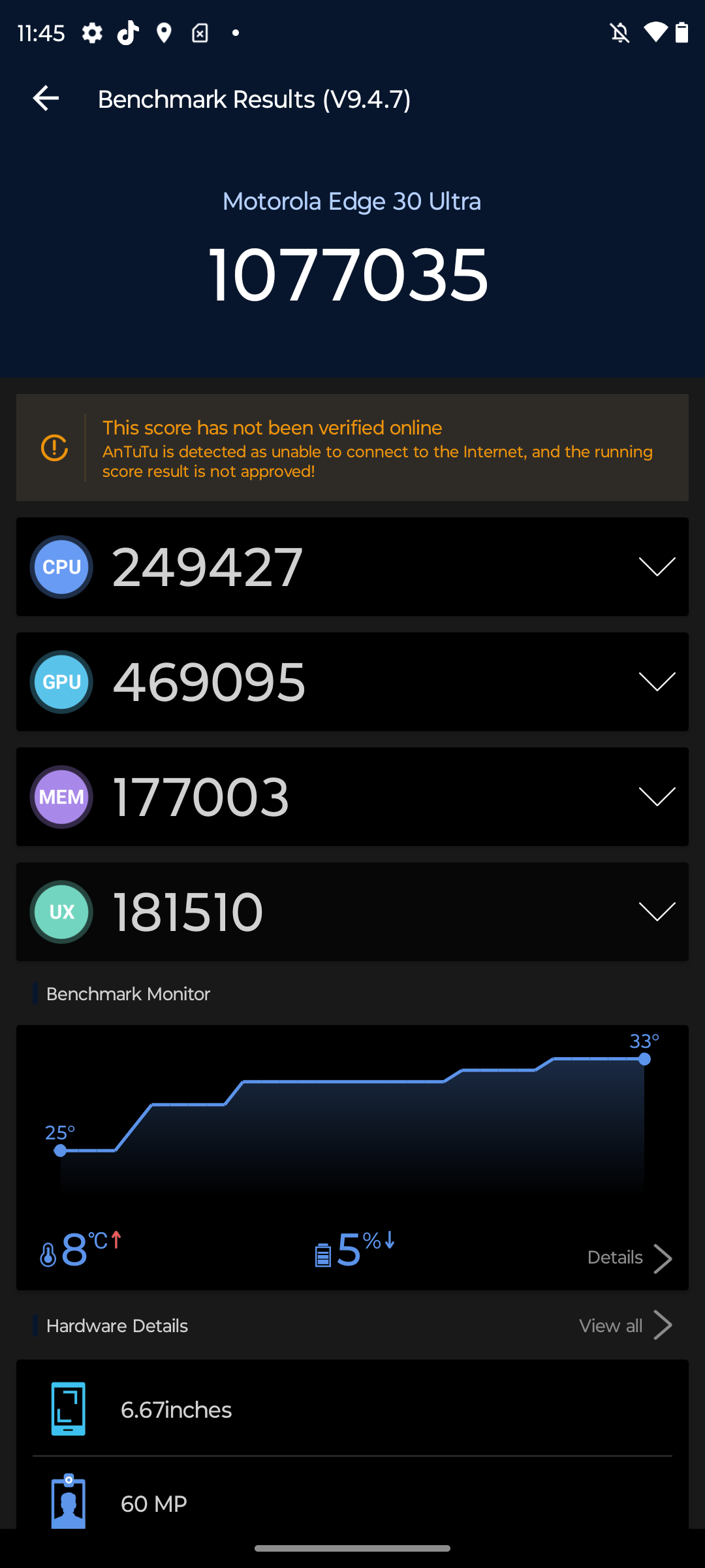 Motorola edge 30 ultra otrzymała flagowy procesor Snapdragon® 8+ Gen 1 Mobile Platform, który znajdziemy też w kilku modelach na rynku zatem nie muszę go już przedstawiać. Smartfon powinien poradzić sobie niemalże z każdym zadaniem. Tym bardziej, że jest on również wspierany przez 12 GB pamięci RAM LPDDR5 oraz 256 GB pamięci na pliki. Wszystko w nim działa płynnie, szybko reaguje na moje komendy i bez problemu radzi sobie nawet z bardziej wymagającymi aplikacjami. Co ciekawe nie grzeje się zbyt mocno, no chyba, że damy jej naprawdę popalić w grach. Nie zauważyłam też spadku wydajności po dłuższej i bardziej wymagającej pracy.
