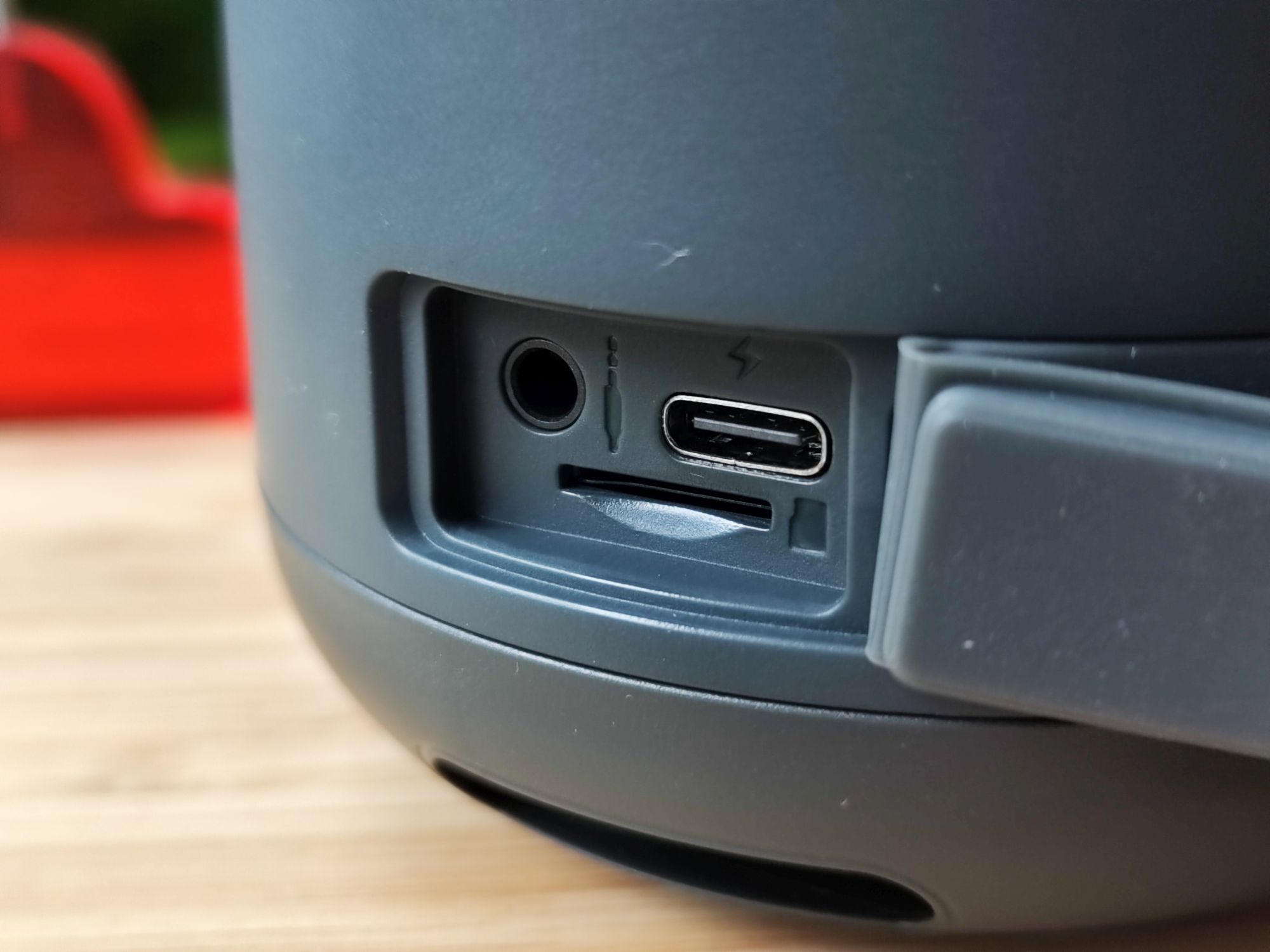 A jak jest z jakością dźwięku? Musze przyznać, że jak na takiego maluszka, to jest bardzo dobrze. Owszem nie rozkręcimy na nim imprez z mnóstwem głośnych osób, ale spokojnie możemy zabrać go na piknik rodzinny, wypad z przyjaciółmi czy spotkanie w pracy czy z klientem w gronie kilku osób. Dźwięk płynący z niego jest czysty i donośny, chociaż wiadomo nie jest to sprzęt dla melomanów. W codziennym użytkowaniu jednak potrafi zaskoczyć i to na plus. Podczas rozmów również spisał się poprawnie – zarówno ja jak i moi rozmówcy słyszeliśmy się dobrze i wyraźnie. Dodam jeszcze, że bateria spokojnie wystarczy też na długi godziny odtwarzania. Producent deklaruje 22h. Nigdy nie słuchałam muzyki tak długo za jednym podejściem, ale przy moich codziennych odtworzeniach po kilka godzin dziennie, ładowarki szukałam po kilku dniach. W opakowaniu znajdziemy tylko kabel USB C, zatem samą ładowarkę musimy już mieć swoją lub podpiąć się pod port w komputerze lub laptopie.