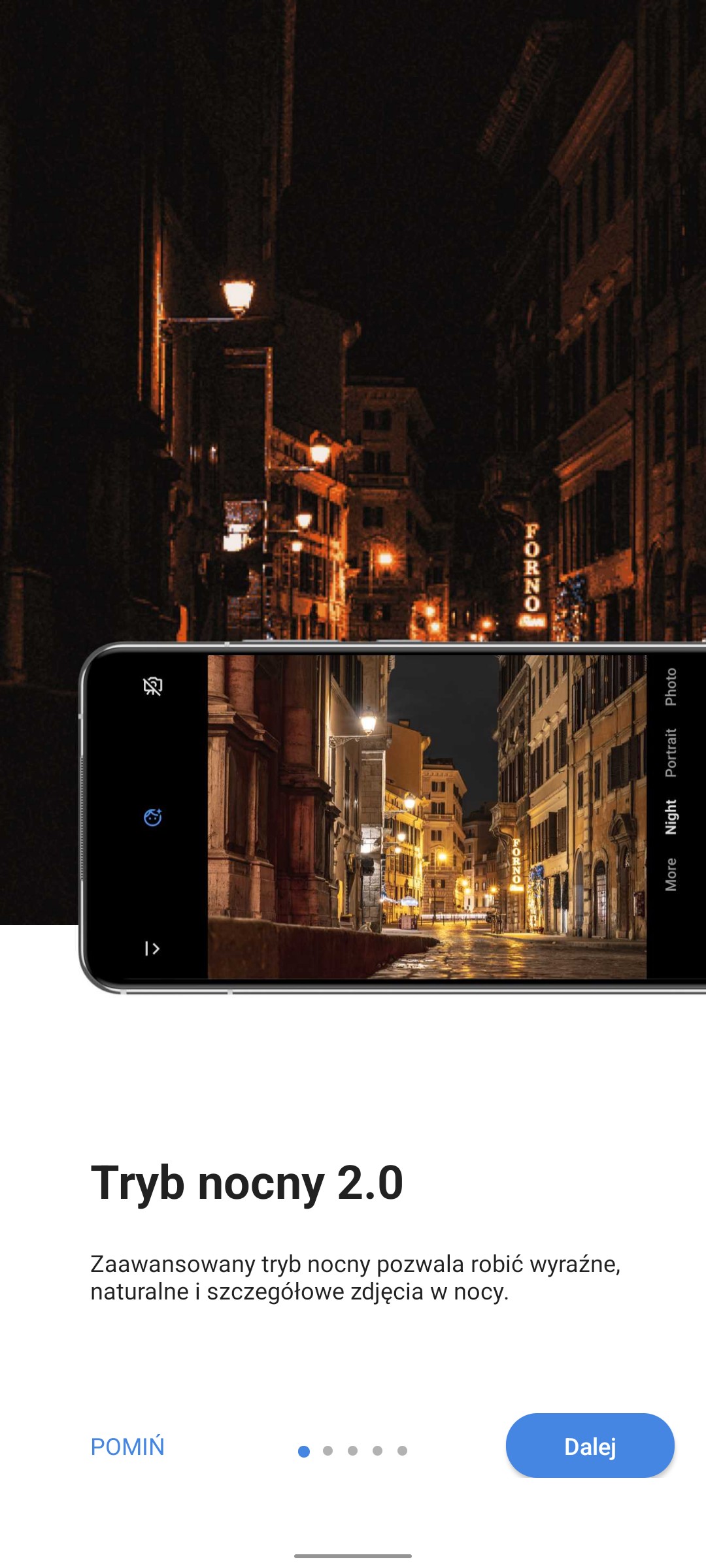 - Tryb nocny – o ile mamy w miarę ładne oświetlenie – np. miejskie budynki