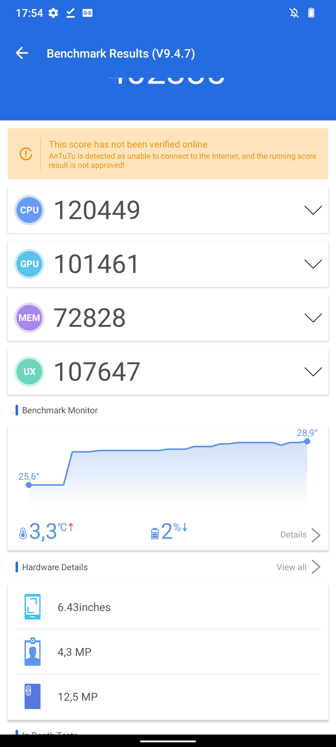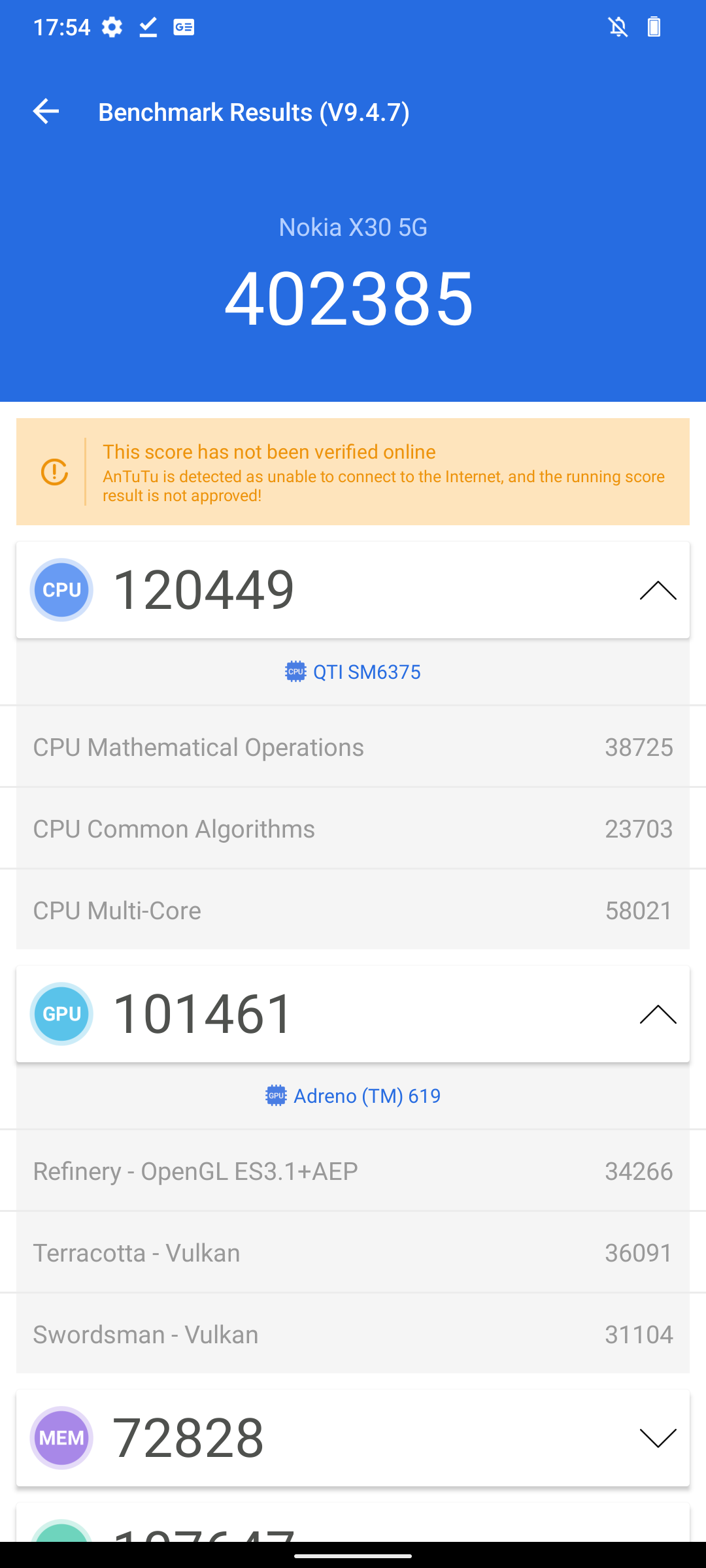 W benchmarku AnTuTu telefon uzyskał ponad 402 tys. punktów.