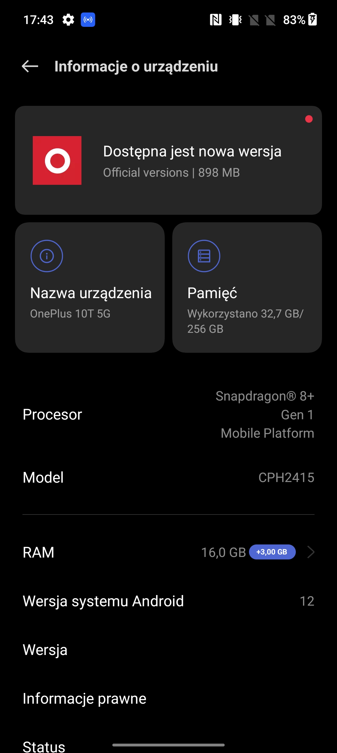 - Android 12.0 z nakładką Oxygen OS 12.1