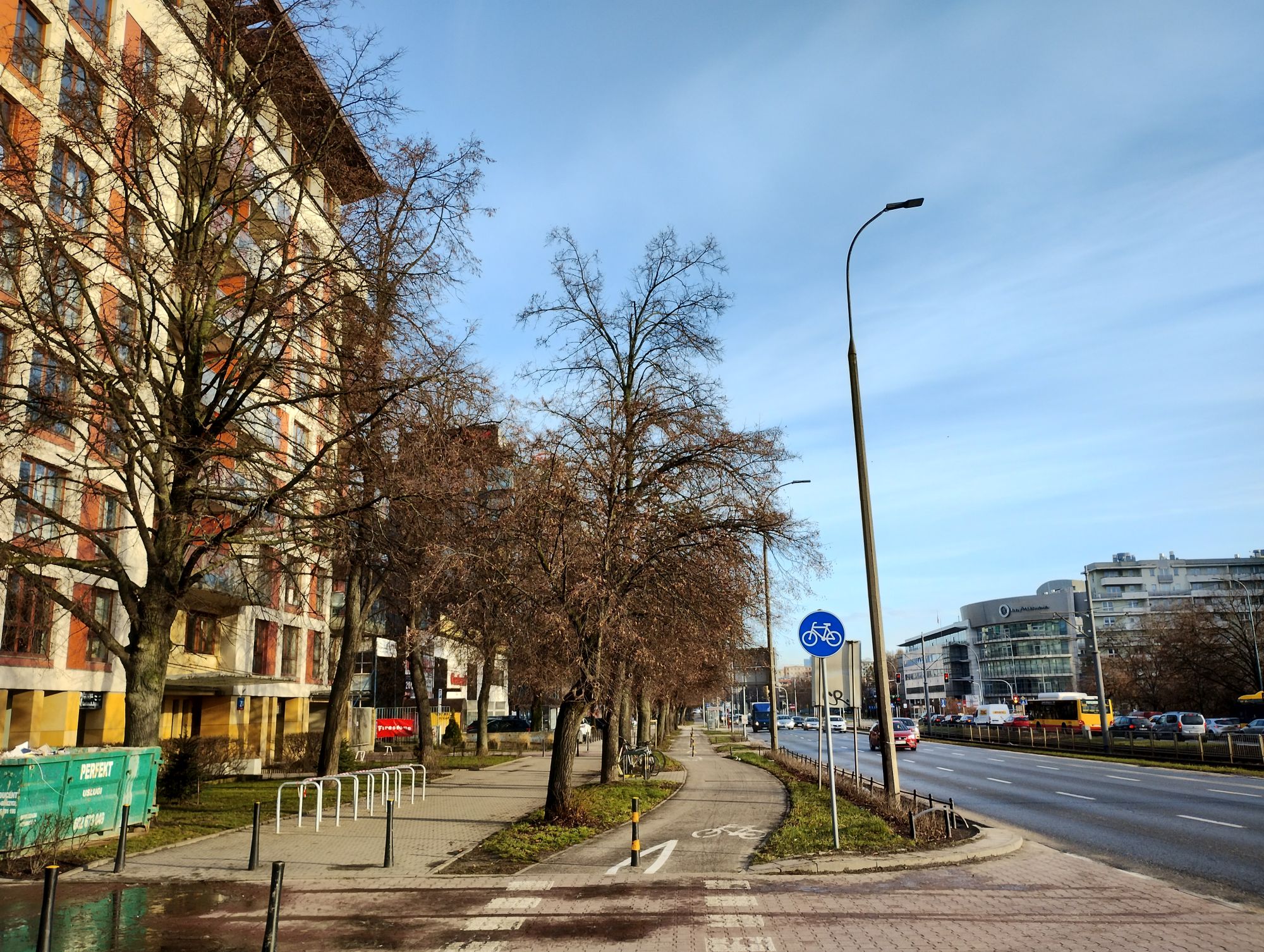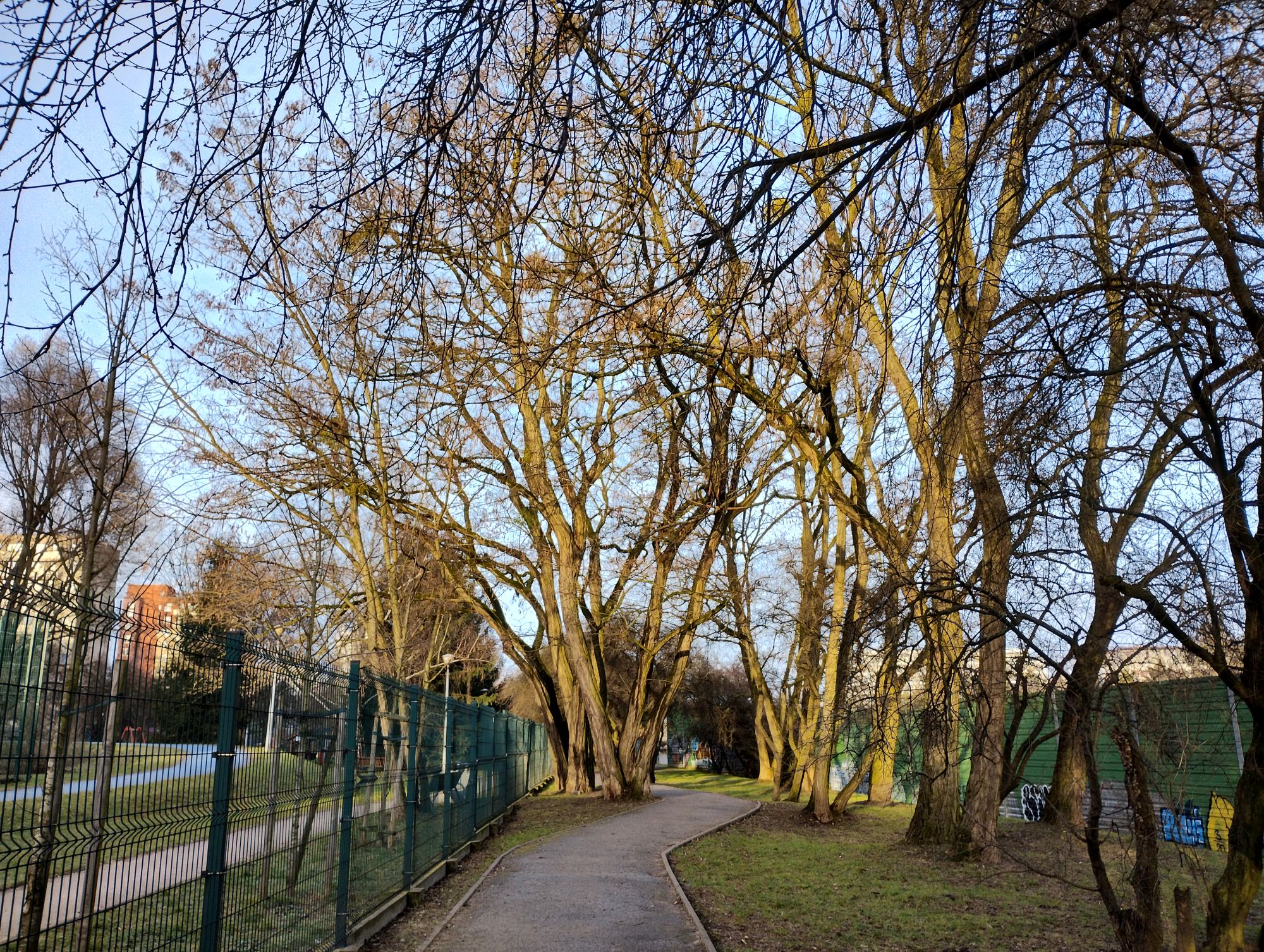 Zostaje zatem obiektyw główny 50 Mpx, który jest nawet całkiem przyzwoity. Przynajmniej przy dobrych warunkach pogodowych. Zdjęcia może nie mają za szerokiej palety barw, ale też nie są jakoś przesycone czy przeostrzone. Powiedziałabym, że są całkiem OK. Trzeba mieć też na uwadze, że jest to aparat raczej do bardziej statycznych zdjęć – nie jest demonem prędkości. Próba złapania kogoś w ruchu raczej zakończy się niepowodzeniem – postać będzie rozmazana. A im brzydsza pogoda czy ciemniej na dworze tym coraz bardziej spada jakość. Mamy do dyspozycji tryb nocny, ale potrafi on trochę prześwietlić niektóre elementy zdjęcia czy pojawią się szumy w ciemniejszych miejscach kadru. Mam wrażenie, że oprogramowanie próbuje trochę za bardzo miejscami rozjaśnić zdjęcie – np. niebo. Przez to też tych szumów mamy więcej.