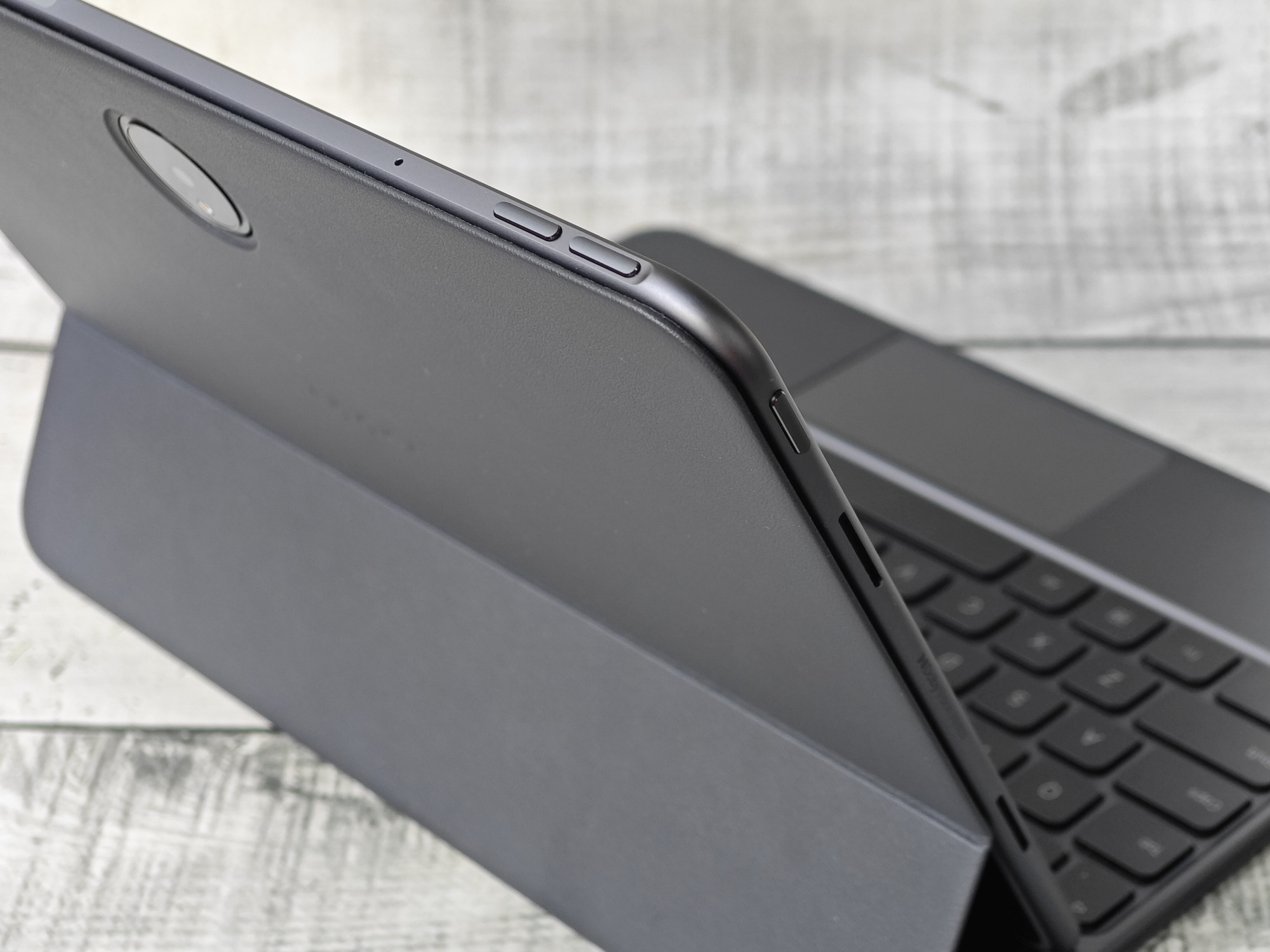 Z drugiej strony mamy do dyspozycji świetne głośniki stereo (po 2 z każdej strony, Dolby Atmos) oraz gniazdo USB C. Muzyka płynąca z głośników jest donośna, czysta, przestrzenna i o całkiem wyraźnych dźwiękach – skierowana pod muzykę rozrywkową, filmy czy gry. Warto też zwrócić uwagę na to, że głośniki zostały rozstawione po bokach, gdy mamy tablet ustawiony w poziomie, a na górze i dole, gdy ustawimy w pionie. Jakbyśmy nie chwycili urządzenia, to praktycznie zawsze mamy minimum 2 głośniki odsłonięte.