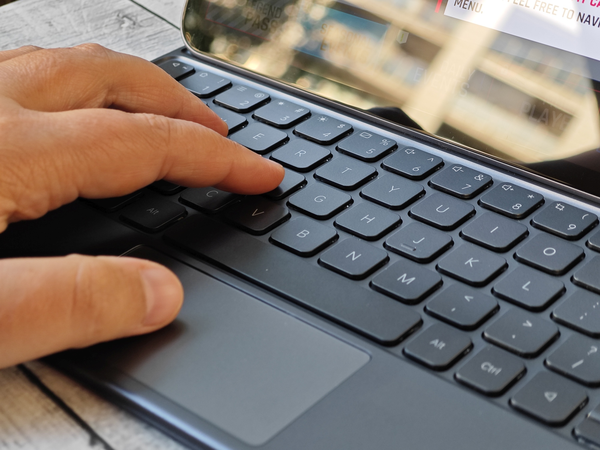 Warto używać klawiatury fizycznej, bo ta na ekranie nie jest zbyt wygodna. Szczególnie, gdy ustawimy tablet poziomo. Przy takim rozmiarze ekranu bardzo ciężko sięgnąć do środkowych klawiszy. Możemy położyć tablet na płasko i wtedy będzie wygodniej, ale w podróży raczej to się nie uda. Ale nie jest tak, że nie da się tego obejść. Możemy uruchomić klawiaturę w mniejszym pływającym okienku i pisać na niej jednym palcem. Zatem nie ma sytuacji bez wyjścia. Nie mniej ciekawszym rozwiązaniem byłby jeszcze jeden tryb wyświetlania klawiatury, a mianowicie – podzielonej na dwie części z przerwą po środku. Wtedy pisanie w poziomie stało by się znacznie wygodniejsze. Gdzieś już takie rozwiązanie widziałam, ale nie mogę sobie teraz przypomnieć gdzie.