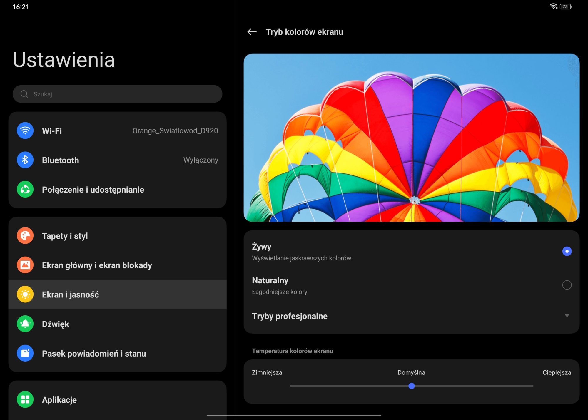 Parametry wyglądają obiecująco, a jak jest w rzeczywistości? Również w użytkowaniu tablet wypada świetnie. Obraz jest wyraźny, kolory nasycone (możemy je też dostosować do swoich preferencji w opcjach), a animacja płynna. Świetnie prezentują się na nim klasyczne dokumenty jak i filmy czy gry. W opcjach możemy również przełączyć się na tryb ciemny, zmienić częstotliwość odświeżania czy włączyć tryb „komfort oczu”. Ponadto w sekcji Mechanizm 01 Ultra Vision możemy włączyć Zwiększenie ostrości obrazu czy Korektor kolorów wideo. Zatem każdy powinien móc dopasować ekran pod swoje preferencje.