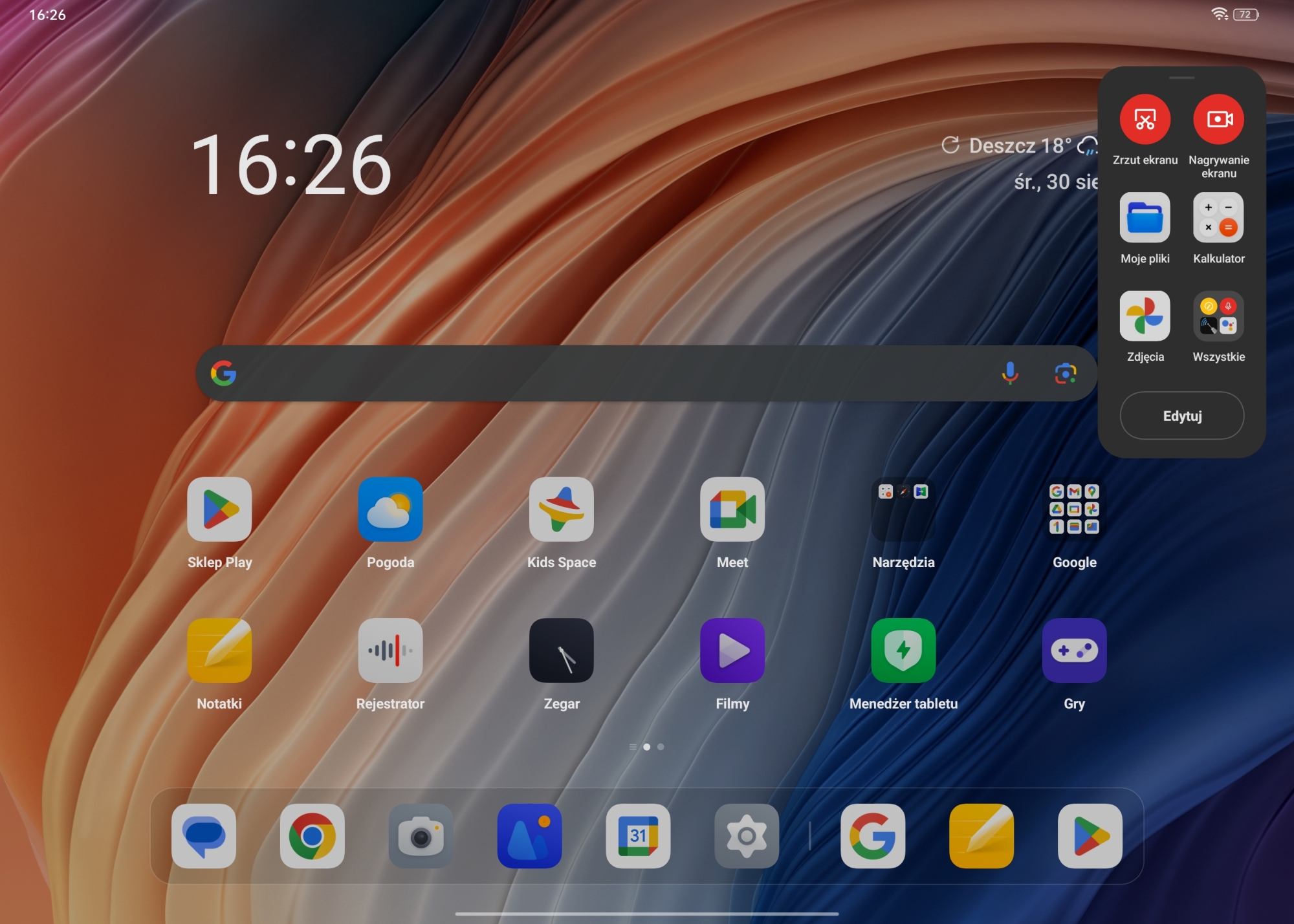 Na pokładzie tabletu znajdziemy aktualnie Android™ 13 z nakładką ColorOS 13.1 z aktualizacją zabezpieczeń z 5.07.2023r. oraz komplet aplikacji od Google. Z Google Play możemy pobrać kolejne aplikacje czy gry. Jeśli chodzi o sam system praz nakładkę, to za bardzo nie muszę go już chyba przedstawiać, gdyż nie znajdziemy tutaj jakiś większych różnic z tym co mamy na telefonie komórkowym. Bardziej istotne są jednak funkcje, które pozwolą na przyjemniejsze użytkowanie i lepsze wykorzystanie przestrzeni tabletu. Od razu dodam, że nie znajdziemy w nim trybu pulpitu, a szkoda, ale za to mamy następujące udogodnienia: