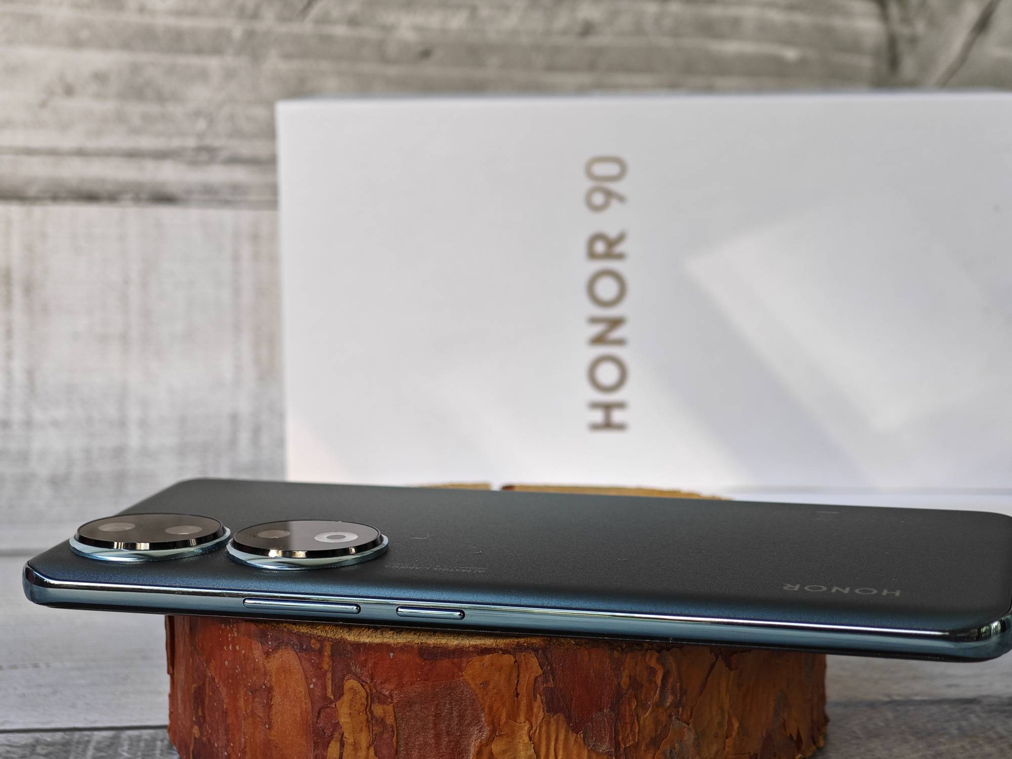 Wymiary Honor 90 to 161,9 mm x 74,1 mm x 7,8 mm, a waga to ok. 183 g (w tym bateria). Mimo swoich rozmiarów telefon dobrze wpasowuje się w dłoń. Chwyt jest pewny, a smartfon nie wyślizguje się z dłoni – plecki w matowej wersji nie są tak śliskie jak z gładkim szkłem.