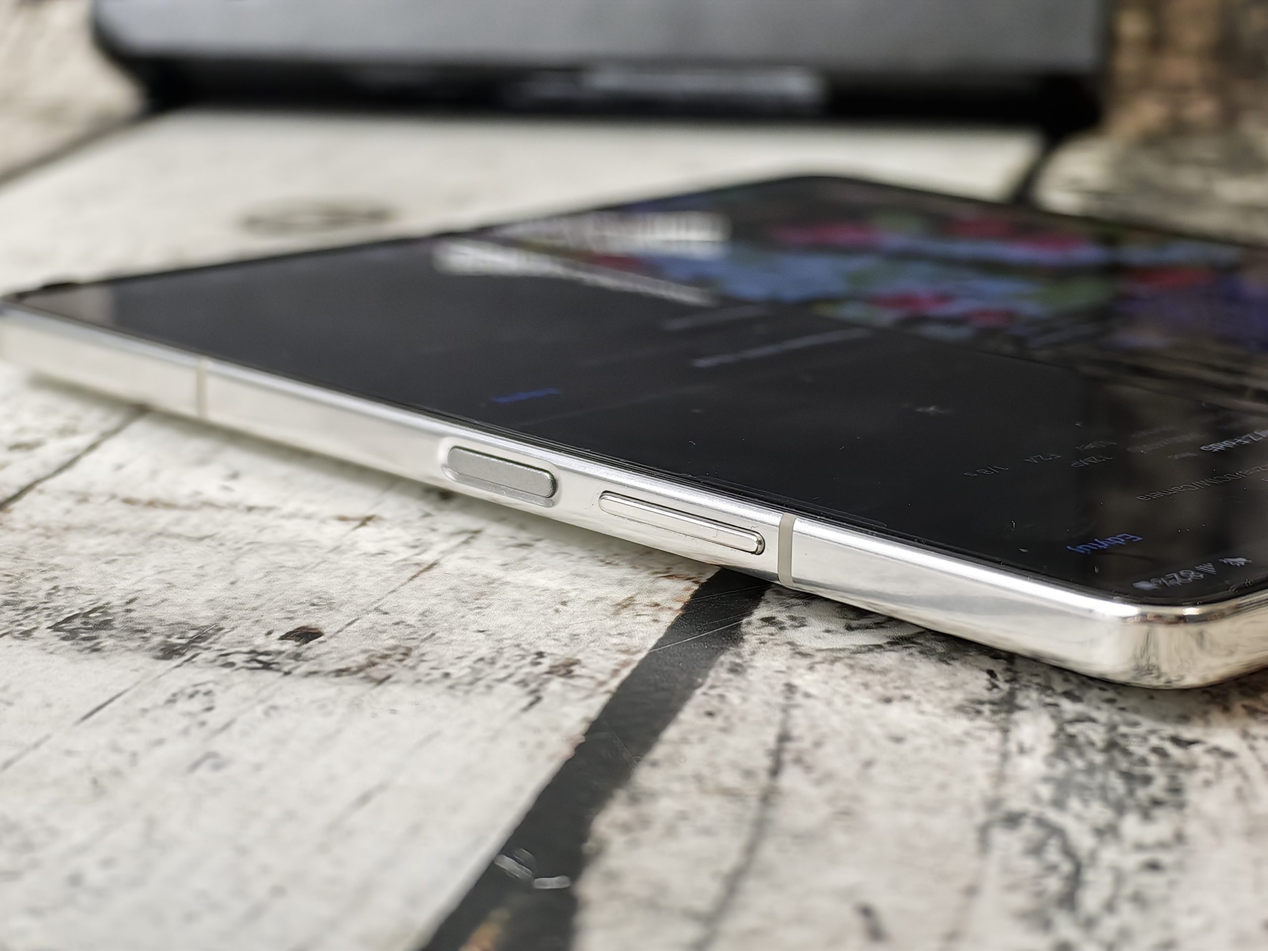 - Na prawej krawędzi – przycisk ON/OFF z czytnikiem linii papilarnych, przyciski głośności