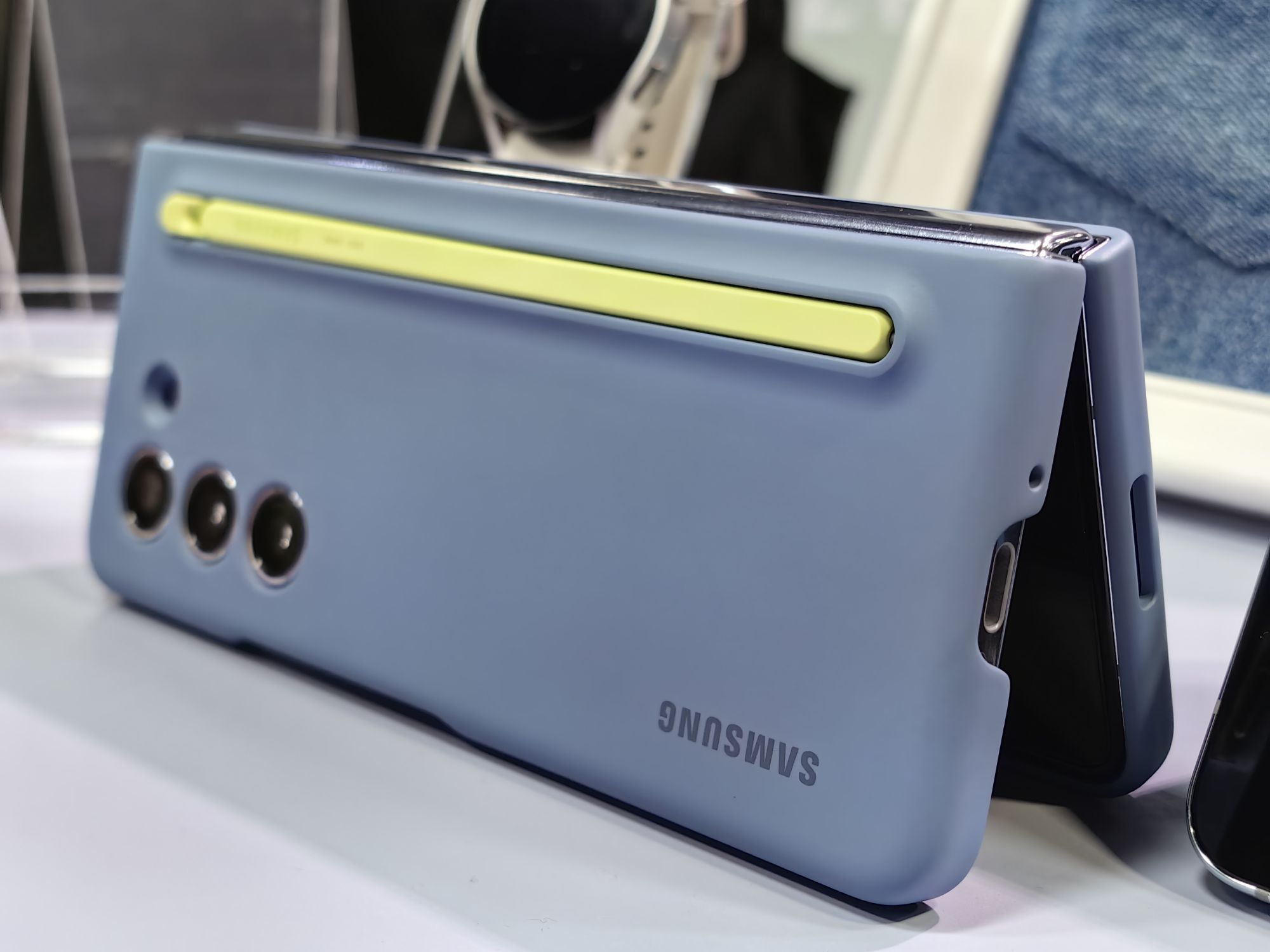 Co więcej możemy też bez problemu użyć rysika do obsługi interfejsu. Znamy go również z poprzednika. Miałam nadzieję, że w tej odsłonie rysik zostanie schowany wewnątrz folda, ale niestety tak się nie stało. Może następnym razem? Aktualnie producent podkreśla, że został on zoptymalizowany pod kątem jeszcze wydajniejszej współpracy z modelem Galaxy Z Fold5 i możemy go ładnie schować w nowym etui. Chociaż tyle Niestety zarówno rysik jak i etui nie jest częścią zestawu i musimy zadbać o niego sami. Krótko mówić dokupić.