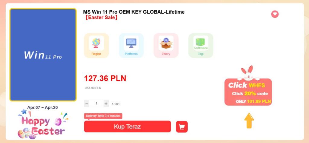 Jeśli szukamy stabilnego systemu operacyjnego to Whokeys jest dobrą opcją. W ramach promocji na nowy rok możemy skorzystać z kodu promocyjnego X25, który sprawi, że oryginalna cena Windowsa 10 Pro zostanie obniżona o 30% – do ok 18 Euro, czyli ok. 77 zł a na Windows 11 Pro za 23 Euro.