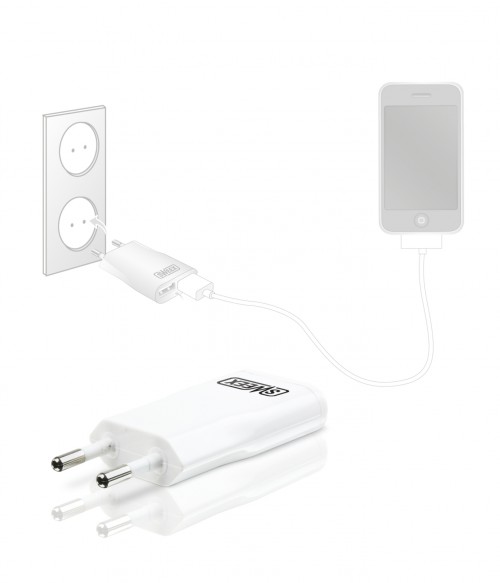 Sweex Dual USB Charger wyposażony jest w klasyczną wtyczkę elektryczną oraz dwa standardowe porty USB – dzięki temu jednocześnie można podłączyć do niego dwa różne urządzenia.