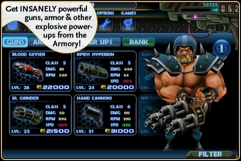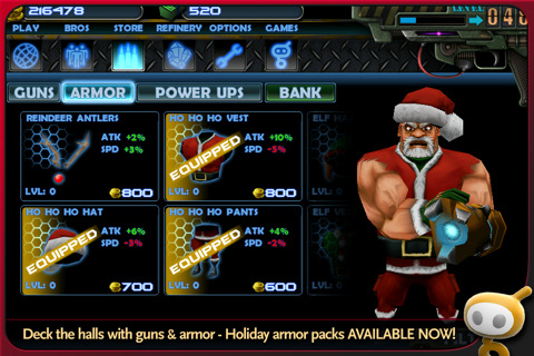 Jeśli chodzi o pancerz jest tego dwukrotnie więcej. Niektóre jego rodzaje mają więcej wspólnego z ozdobą niż z rzeczywistą osłoną przed obrażeniami. Trzecią kategorią sprzętu jaki możemy zakupić w sklepie są tzw. power up’y. Czym są i co ciekawego dają? Są to zazwyczaj steam packi podnoszące na jakiś czas wartość wybranych statystyk naszego bohatera lub też wspomaganie w postaci: różnego rodzaju granatów o specjalnych możliwościach, automatycznych działek strzelniczych, wsparcia ze strony nalotów bombowych z powietrza czy też automatycznego naprowadzania pocisków na przeciwników. Na zakończenie opisu tego co możemy nabyć w sklepie należy dodać, że każdy zakup wiąże się zazwyczaj z podniesieniem cech naszej postaci choć zdarzają się i wyjątki obniżające niektóre współczynniki.