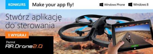 „Make Your App Fly” to konkurs przeznaczony dla naprawdę pomysłowych i zdolnych deweloperów. Aby wygrać, należy stworzyć aplikację do sterowania Parrot AR. Drone 2.0 na system Windows 8, Windows 8.1 lub Windows Phone. Dla tych, którzy wzbiją się na wyżyny kreatywności, czeka główna nagroda – AR. Drone.