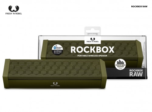 Rockbox Raw przyciąga uwagę swoim drapieżnym wyglądem. W „chropowatej” obudowie kryją się dwa przetworniki 40 mm oraz pasywny subwoofer, które gwarantują nieskazitelne brzmienie i moc. Maksymalny czas pracy kolumienki wynosi 10 godzin. Producent oferuje Rockbox Raw w kolorze szarym i ciemnozielonym.