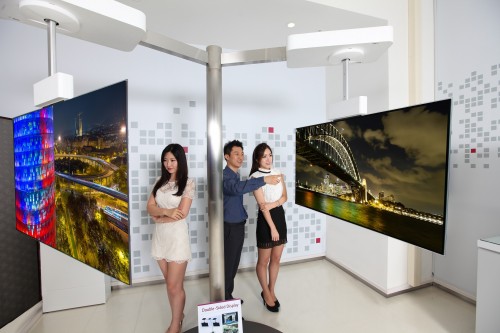 Podczas inauguracji targów IFA firma LG Display zaprezentowała kilka prototypowych ekranów z matrycami OLED, w tym 111-calowy „falisty” dwustronny ekran (Vertical Tiling OLED), wykonany z trzech połączonych ze sobą wyświetlaczy OLED Ultra HD o przekątnej 65-cali każdy.