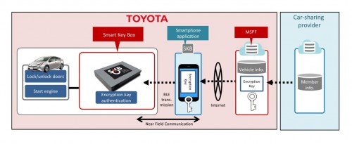 Nowe rozwiązanie powstało z myślą o programach wynajmu samochodów na minuty (car-sharing). Będą mogli z niego korzystać również prywatni właściciele samochodów japońskiej marki i klienci flotowi. Aplikacja mobilna będzie współpracowała z innym wynalazkiem Toyoty, Smart Key Box. Urządzenie instalowane w samochodach będzie odbierało sygnały z aplikacji na urządzeniu mobilnym, umożliwiając otwarcie auta i uruchomienie silnika.
