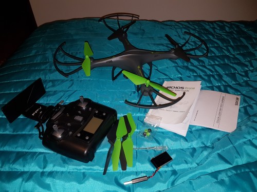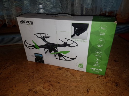 Archos Drone jest to mały dron, który w ciągu kilku sekund osiąga maksymalną prędkość 7,7 m/s w poziomie i 1,6 m/s w pionie, podnosząc się na wysokość do 50 metrów i pozostając w ciągłym locie od 7 do 9 minut.