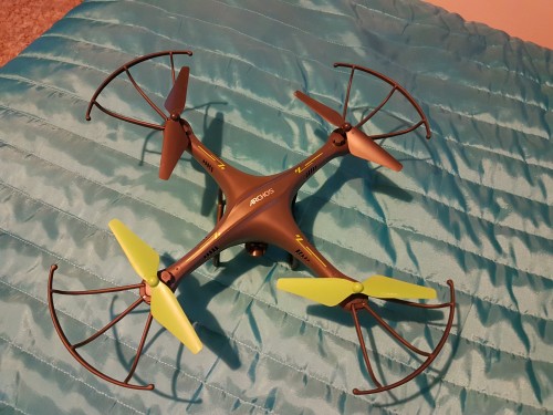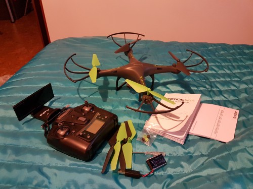 Dron wyposażono w kamerę 1MP o rozdzielczości 1280×720 (HD), której ujęcia możemy oglądać w czasie rzeczywistym na smartfonie lub przechowywać na załączonej w zestawie karcie micro SD o pojemności 4GB.