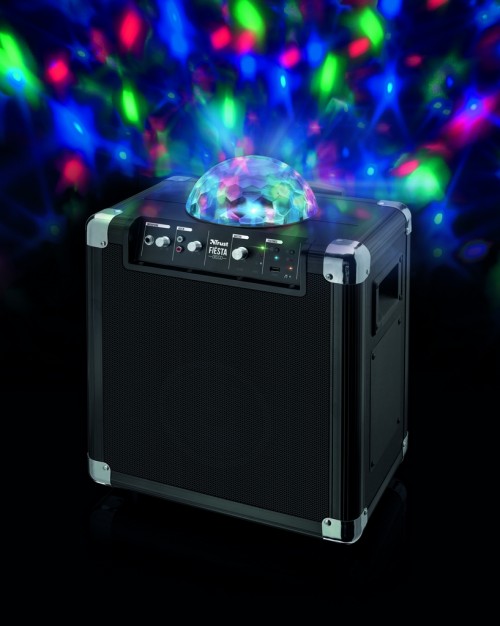 Fiësta Pro to wersja rozszerzona podstawowego głośnika z rodziny Fiësta. Jest to sprzęt o mocy 60W, wykorzystujący bezprzewodowy system Bluetooth (do 10 metrów). Wysuwana rączka i kółka pozwalają zabrać produkt w dowolne miejsce bez konieczności wyłączania muzyki.. Głośnik firmy Trust ma wbudowaną baterię, która pozwoli na nawet 90 godzin ciągłego odsłuchu. Panel sterowania z oddzielnymi pokrętłami odpowiadającymi za niskie, średnie i wysokie tony pozwala dopasować dźwięk zgodnie z upodobaniami użytkownika.