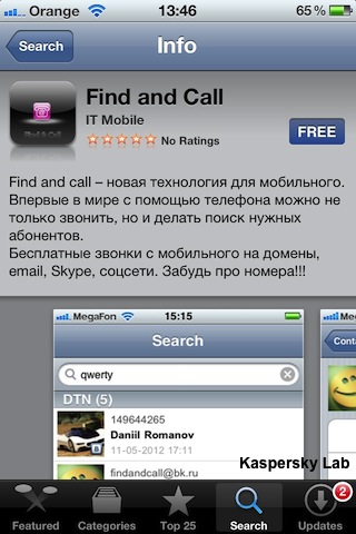 Rosyjskojęzyczni użytkownicy mogli natrafić na trojana Find and Call w sklepach App Store oraz Google Play. Aplikacja rzekomo oferowała możliwość bezpłatnego rozmawiania ze znajomymi.