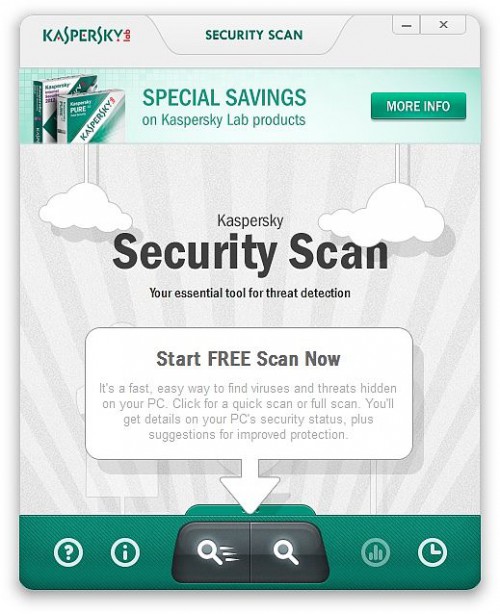 Kaspersky Security Scan to niewielkie narzędzie zoptymalizowane pod kątem szybkiej instalacji bez konieczności wykonywania jakichkolwiek czynności dodatkowych i powtórnego uruchamiania systemu. Jest ono kompatybilne z innymi rozwiązaniami bezpieczeństwa, dostarczając użytkownikowi „drugą opinię” odnośnie stanu bezpieczeństwa. Od razu po zainstalowaniu Kaspersky Security Scan jest gotowy do sprawdzenia systemu, przeprowadzając skanowanie w poszukiwaniu szkodliwych programów, stanu ustawień bezpieczeństwa systemu Windows oraz luk w popularnych programach. Domyślnie, skanowanie systemu jest wykonywane automatycznie trzy razy w tygodniu, jednak ustawienia te mogą zostać zmodyfikowane przez użytkownika. Istnieje możliwość przeprowadzenia szybkiego lub pełnego skanowania systemu.