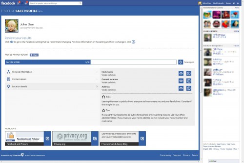 Przeciętny użytkownik traktuje Facebooka jako źródło rozrywki i nie chce się zgłębiać w tajniki skomplikowanych ustawień prywatności – mówi Maria Nordgren, Wiceprezes działu Consumer Security w F-Secure. Tu z pomocą przychodzi nasza najnowsza aplikacja Safe Profile. Dokonaliśmy zestawienia najważniejszych ustawień prywatności na Facebooku. Safe Profile w ciągu zaledwie 2 minut dokładnie skanuje profil użytkownika i wskazuje na możliwe ulepszenia.
