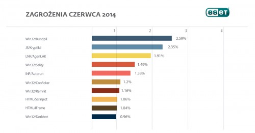 Lista zagrożeń czerwca 2014 wg laboratoriów ESET